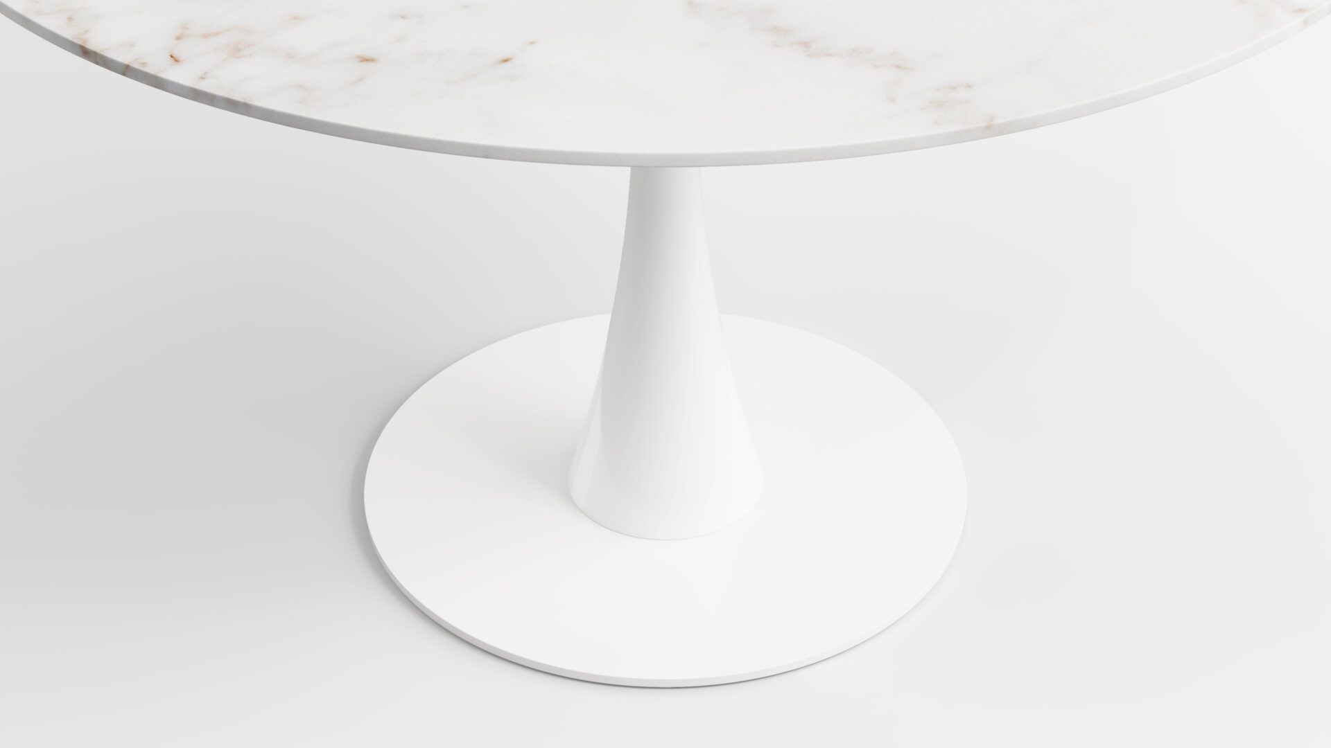 Experience the elegance of the Aarhus Dining Table with this impeccably crafted piece. Made from premium materials, this version features a striking white marble tabletop that seamlessly blends beauty and functionality.