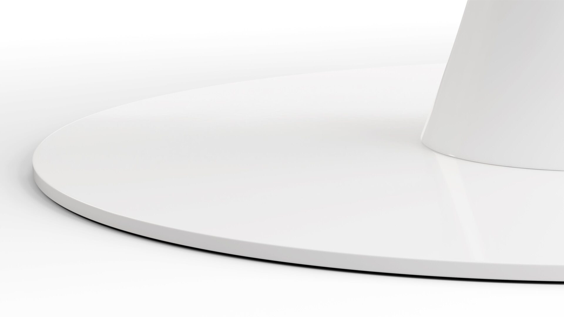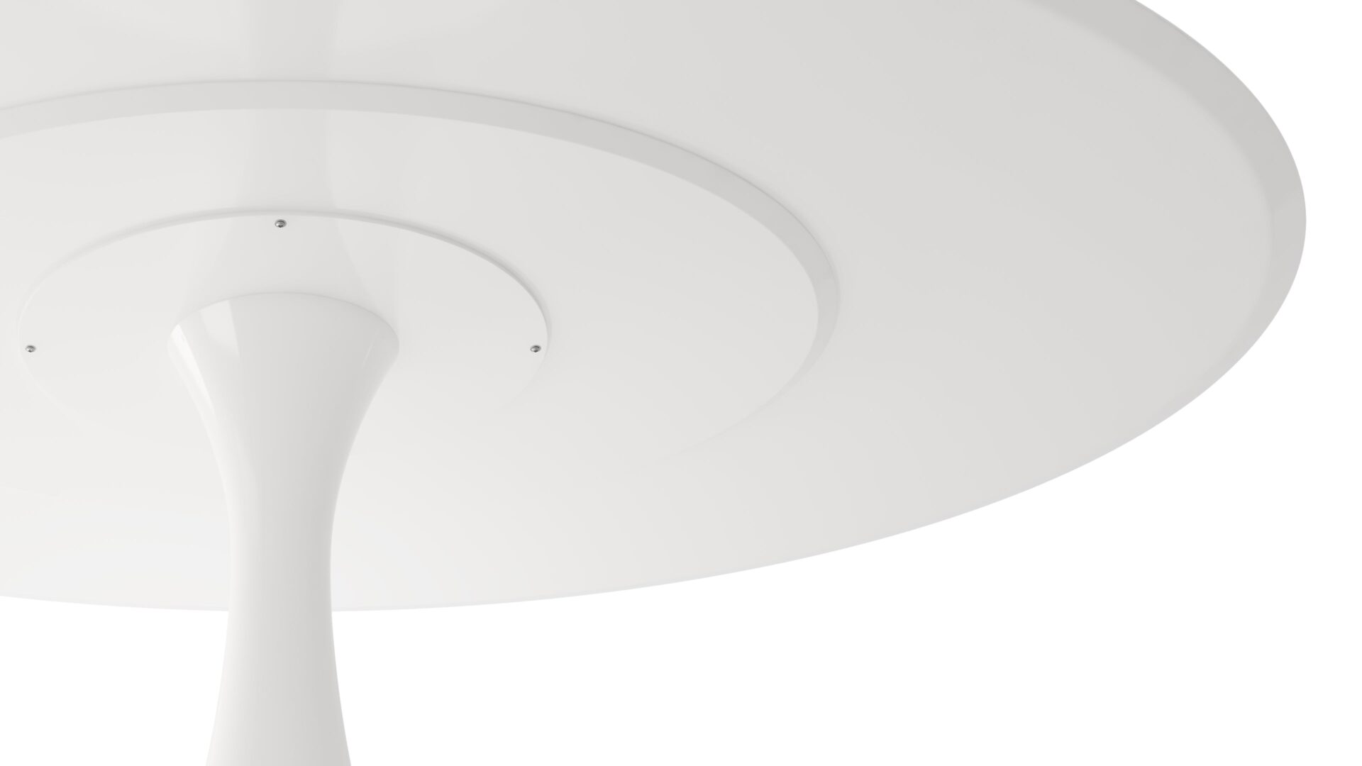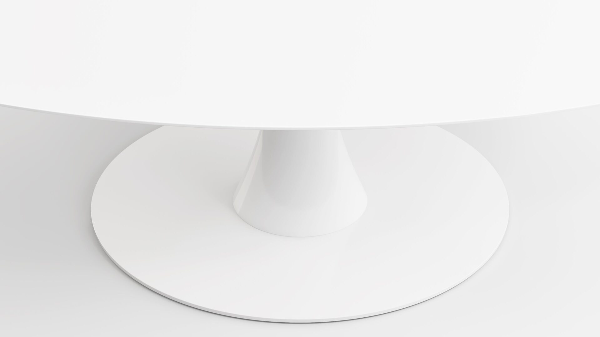 Introducing the Aarhus Table, a modern marvel boasting a chic design and pedestal base that stylishly replaces conventional table legs for a streamlined dining or workspace experience. Inspired by mid-century futuristic aesthetics, this table in a White Lacquer finish offers versatility, elegance, and a minimalist touch to transform your space effortlessly. Resilient, timeless, and adaptable, the Aarhus Table is your go-to furniture solution that promises enduring quality in a busy lifestyle.