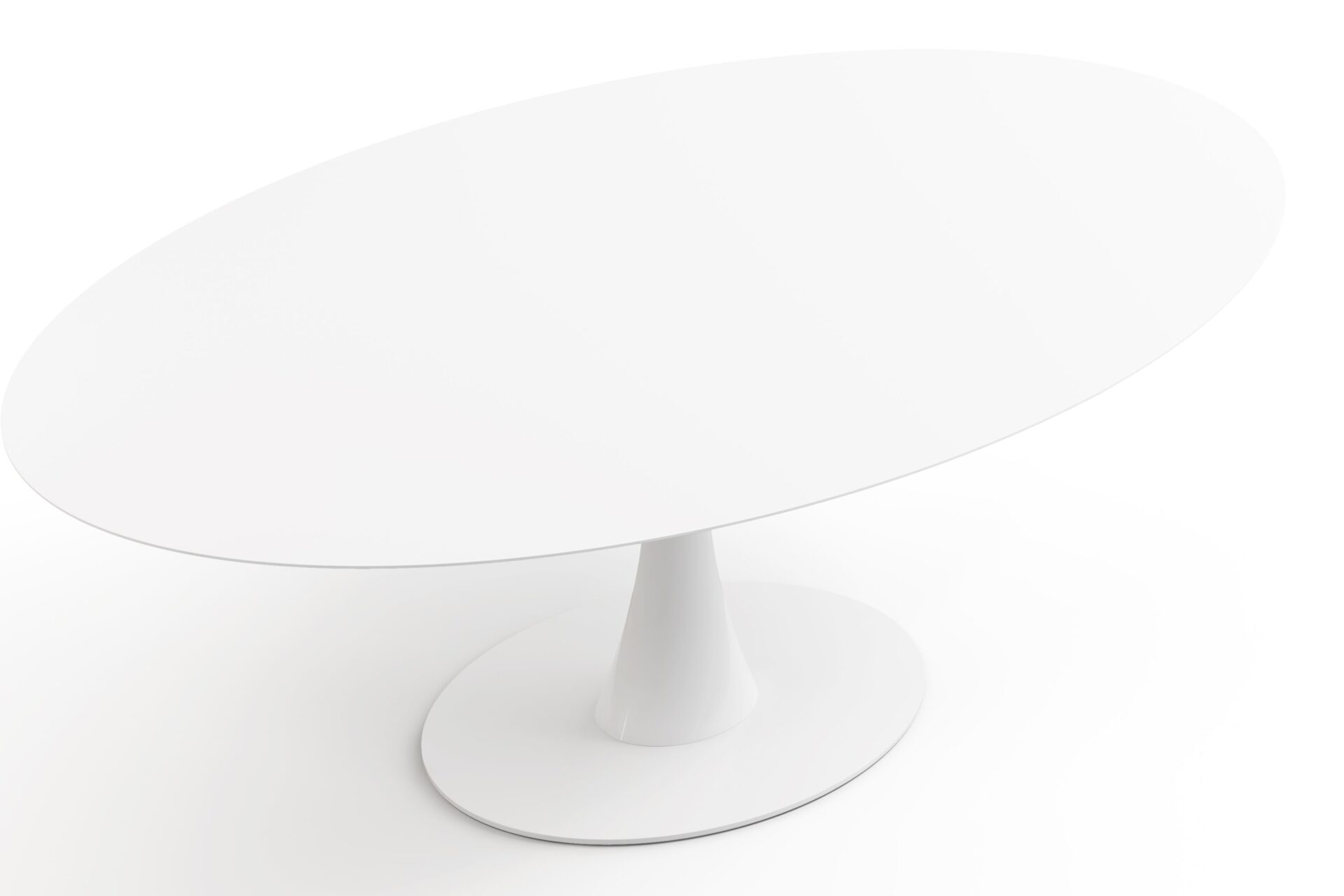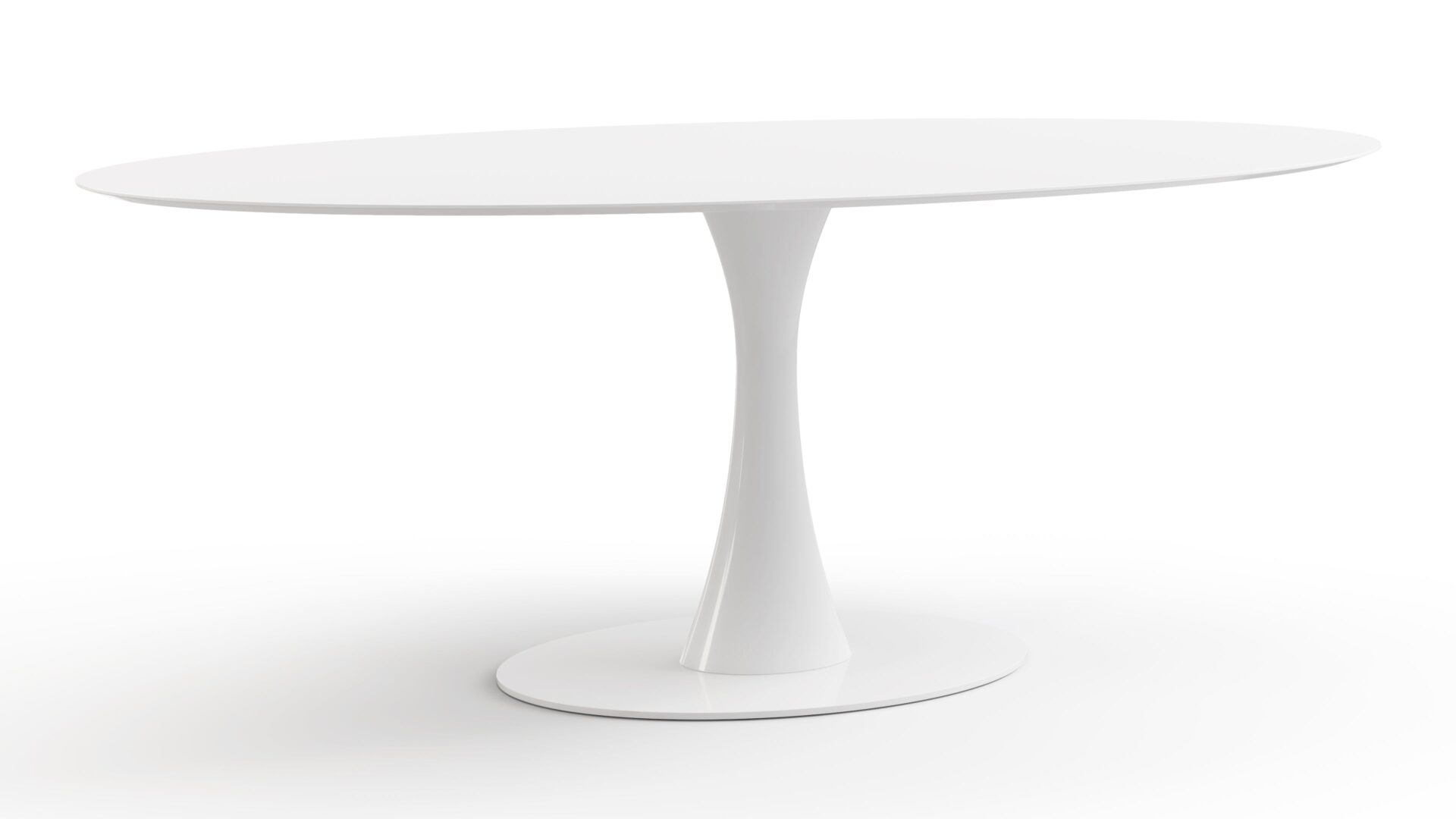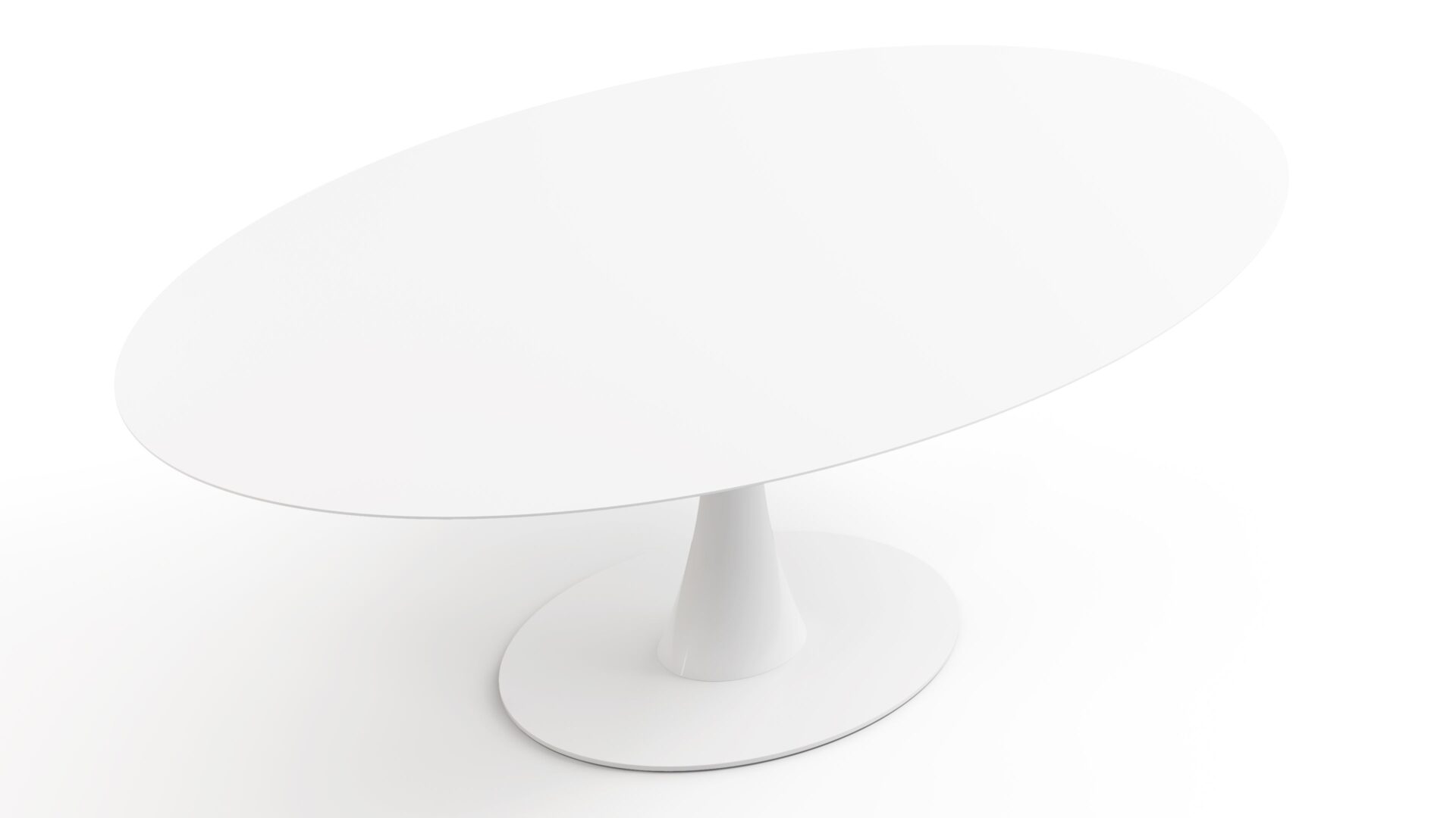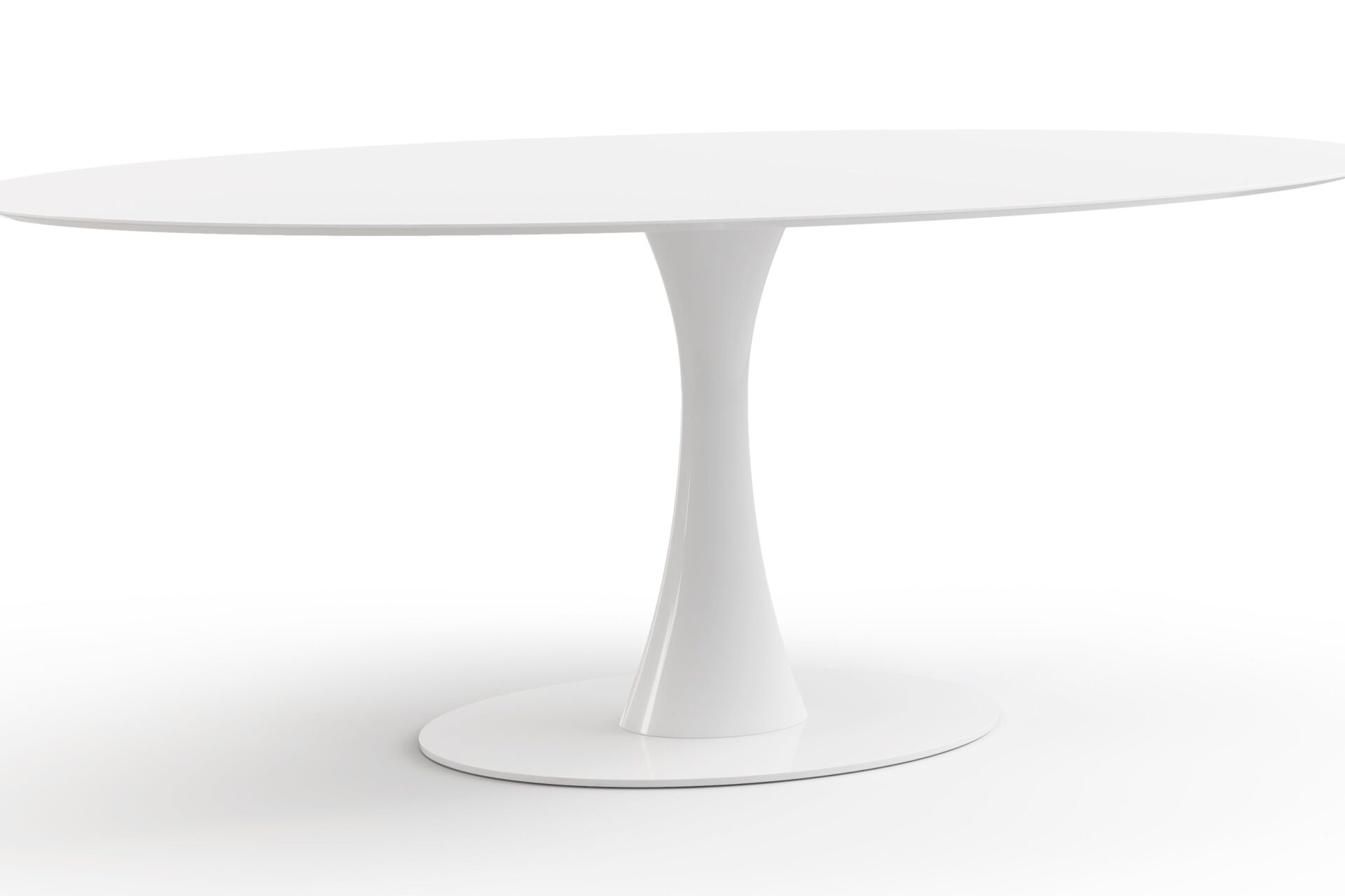 Introducing the Aarhus Table, a modern marvel boasting a chic design and pedestal base that stylishly replaces conventional table legs for a streamlined dining or workspace experience. Inspired by mid-century futuristic aesthetics, this table in a White Lacquer finish offers versatility, elegance, and a minimalist touch to transform your space effortlessly. Resilient, timeless, and adaptable, the Aarhus Table is your go-to furniture solution that promises enduring quality in a busy lifestyle.