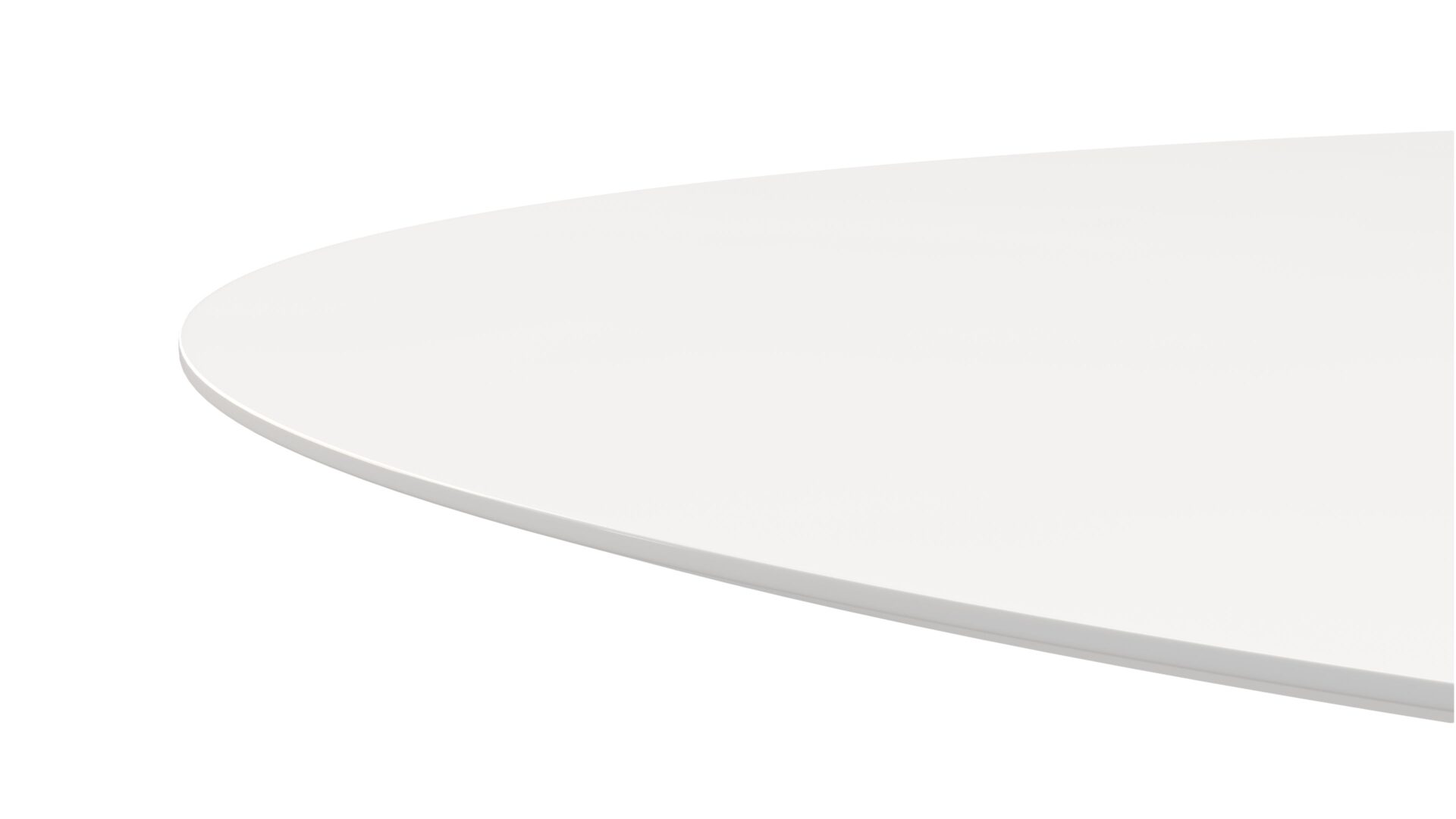 Experience the exquisite design of the Aarhus Dining Table in this modern rendition meticulously crafted with premium materials, featuring a striking white lacquer tabletop that seamlessly blends beauty with functionality.