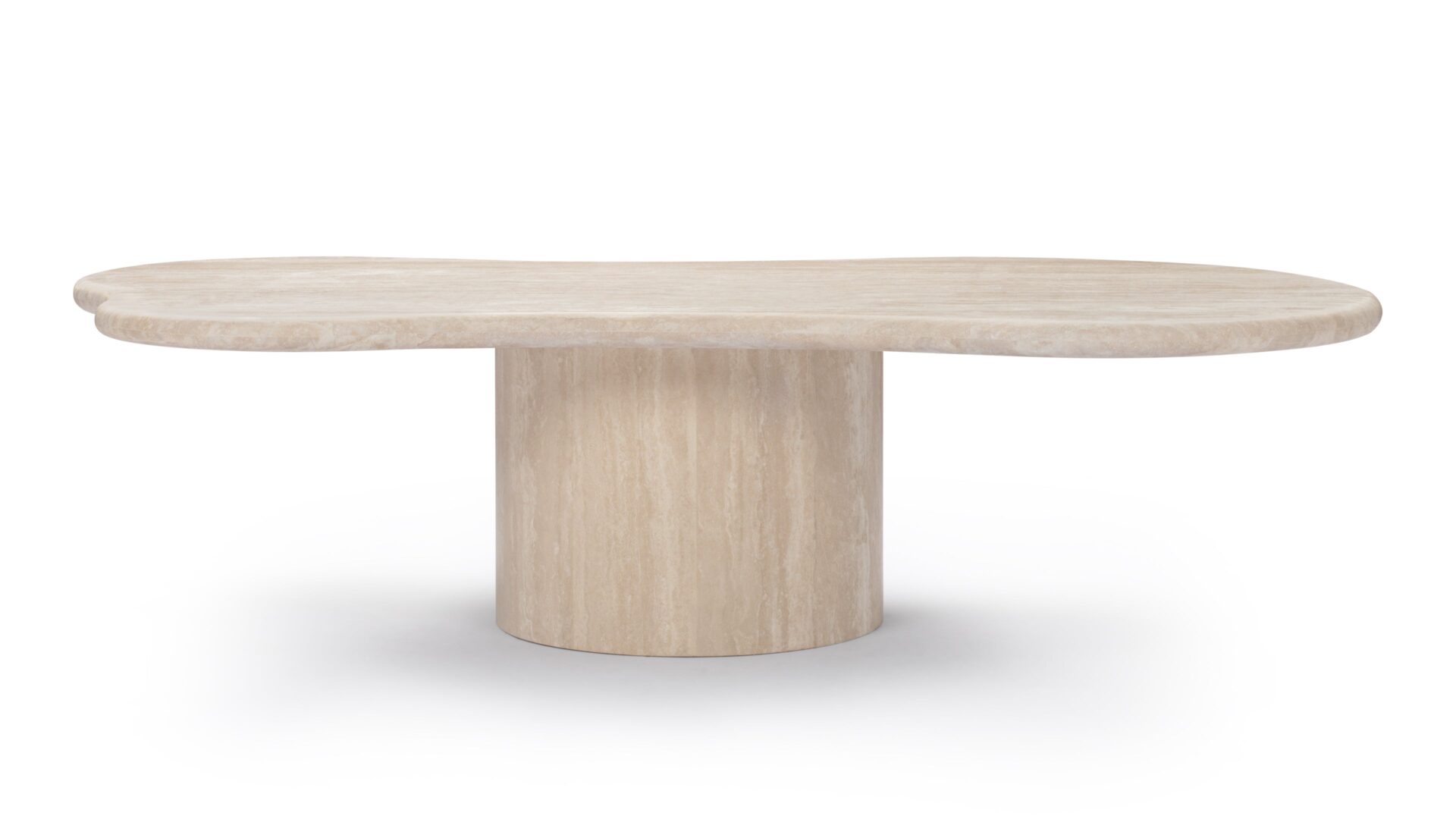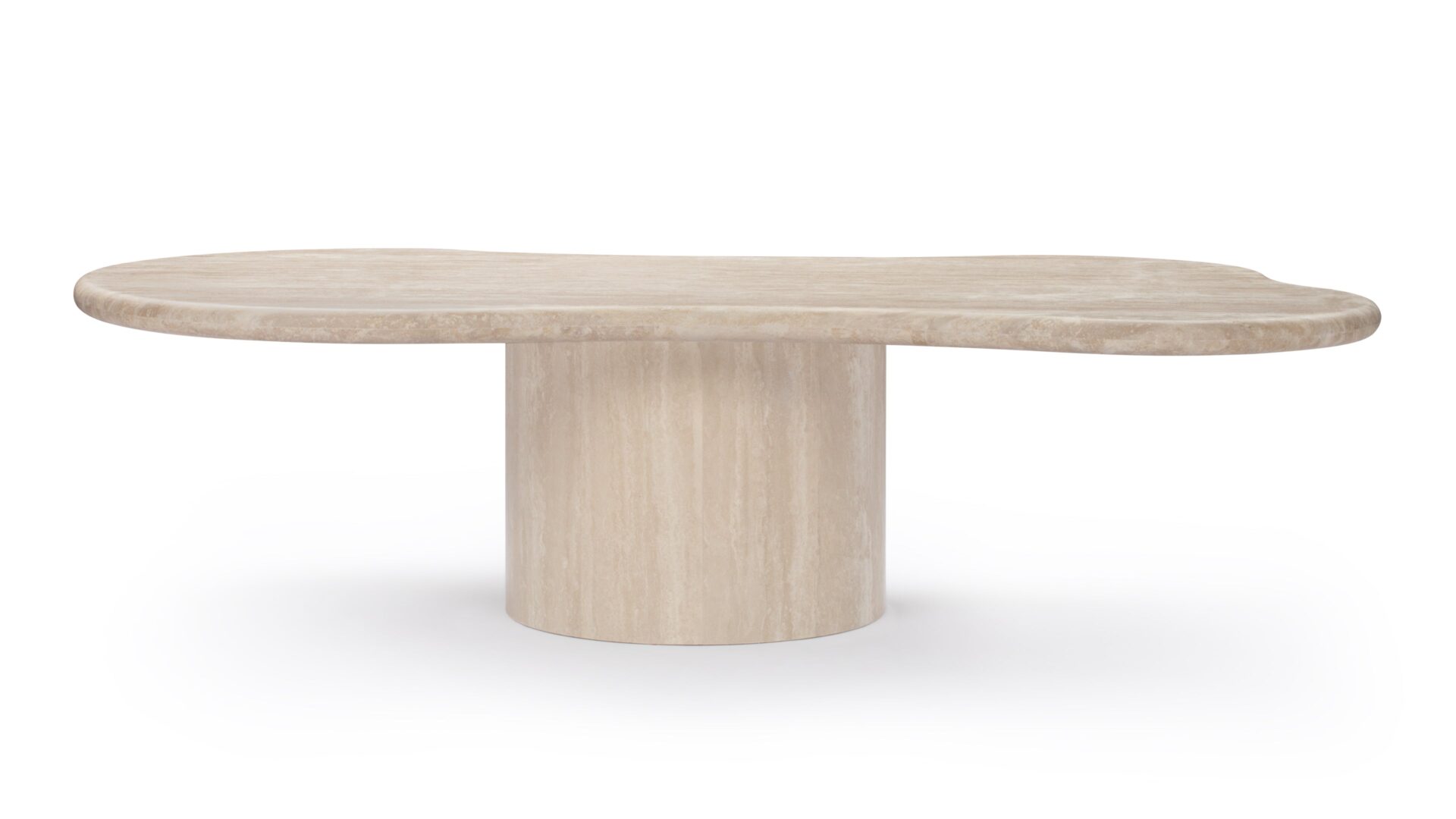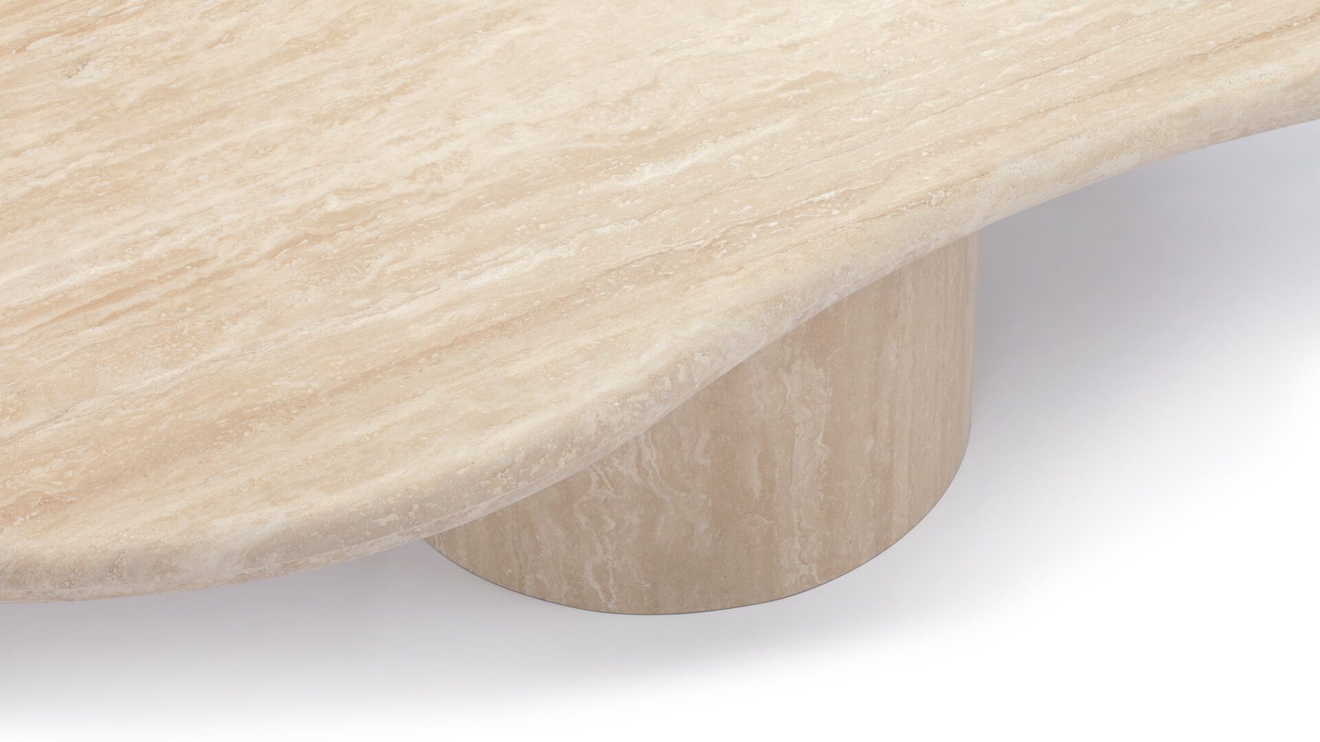 Elevate your space with the Cloud Coffee Table, a stunning blend of charming aesthetics and timeless functionality. Crafted meticulously from exquisite travertine, this piece showcases the marriage of natural elegance and modern design. The modest yet striking 55-inch sculptural top exudes opulence and practicality, each table boasting unique veining and color variations, making it a true work of art that enhances any room.