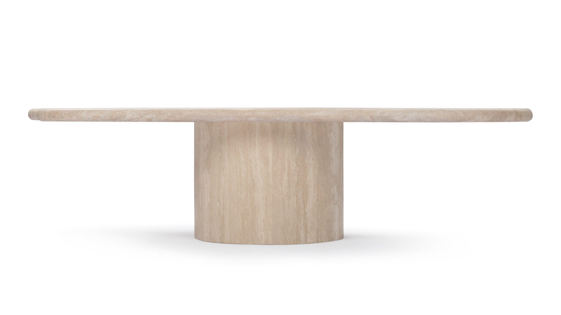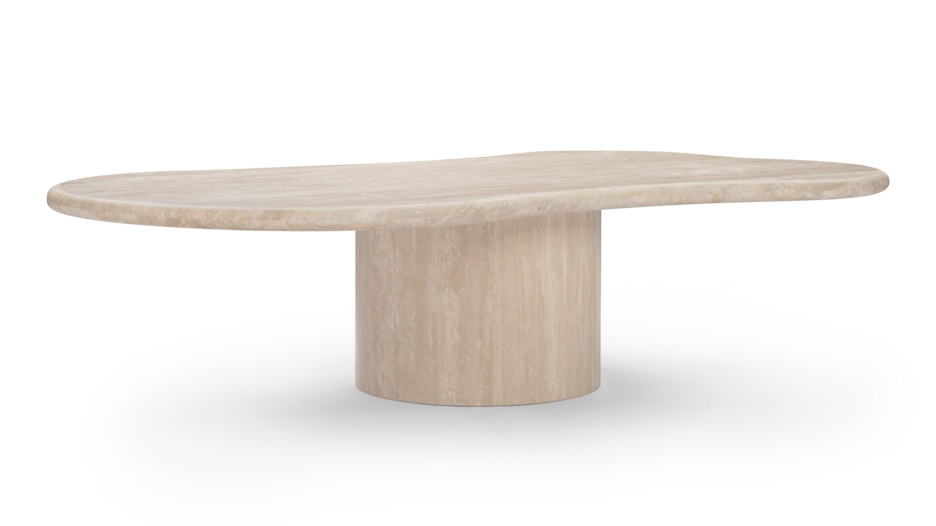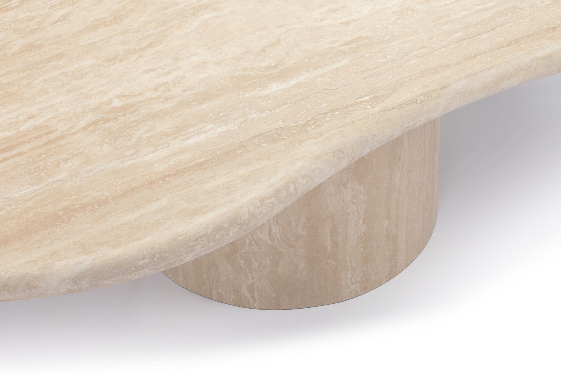 Elevate your space with the Cloud Coffee Table, a stunning blend of charming aesthetics and timeless functionality. Crafted meticulously from exquisite travertine, this piece showcases the marriage of natural elegance and modern design. The modest yet striking 55-inch sculptural top exudes opulence and practicality, each table boasting unique veining and color variations, making it a true work of art that enhances any room.