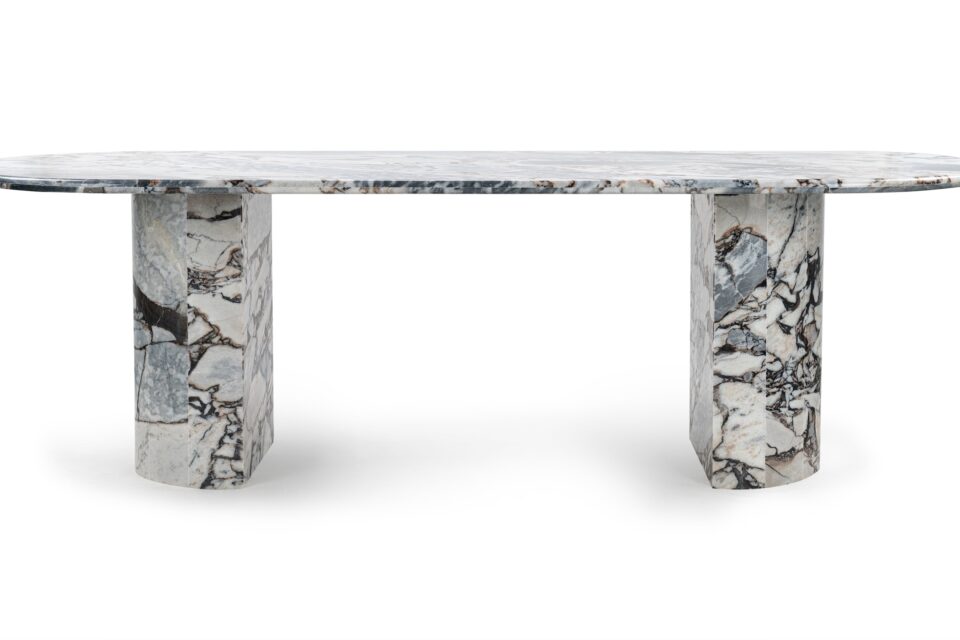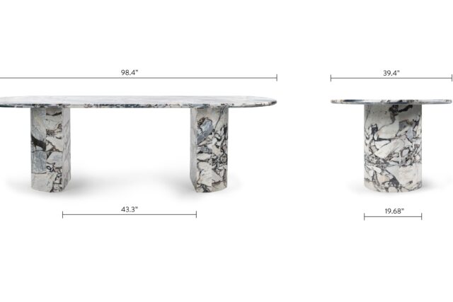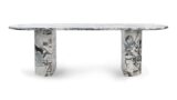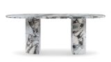 Drizzled in Italian modellato marble from top to bottom, the Dante dining table stands out as the ultimate statement piece. A modern twist on the traditional double pedestal table, this opulent piece is crafted to enhance upscale, modern interiors.