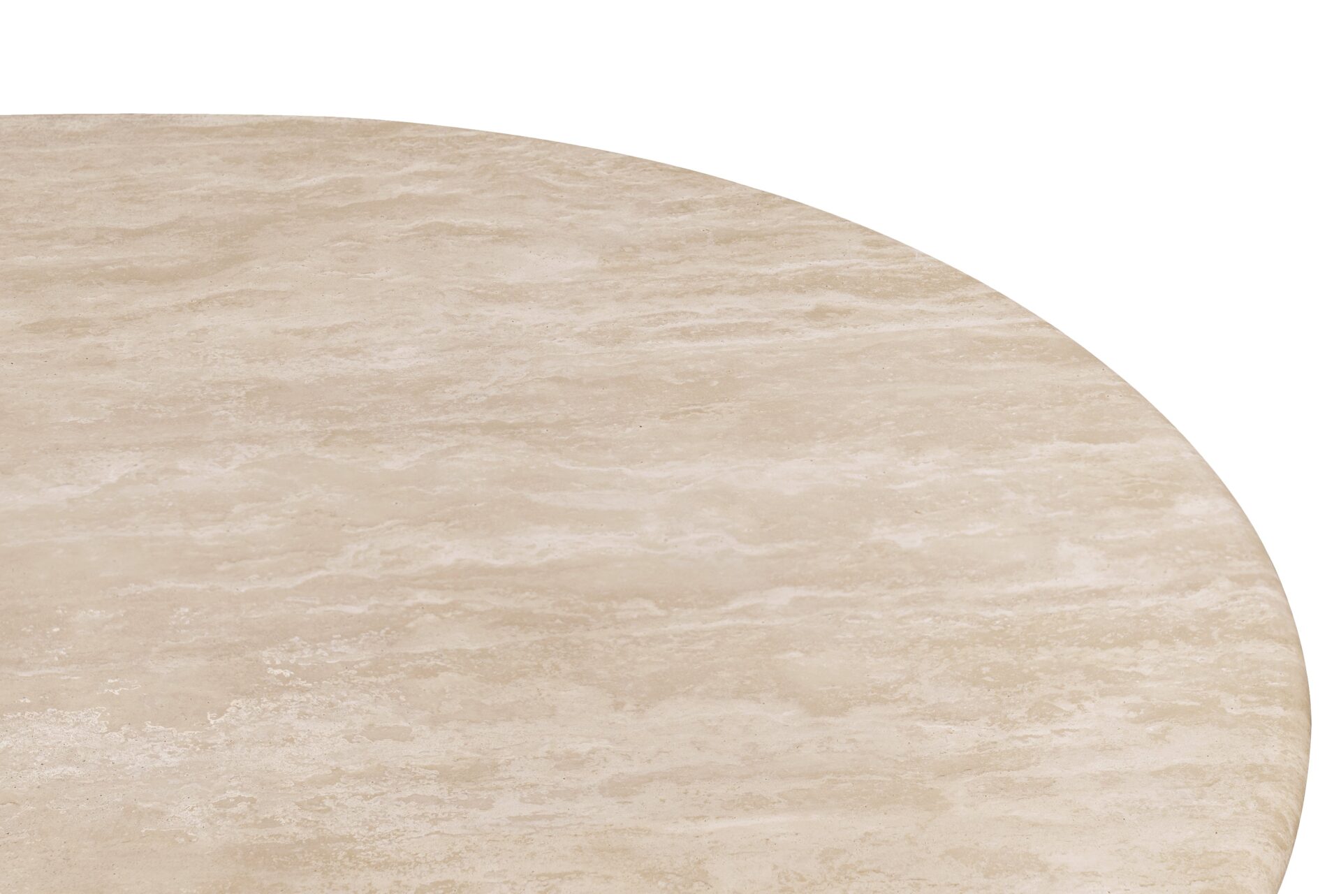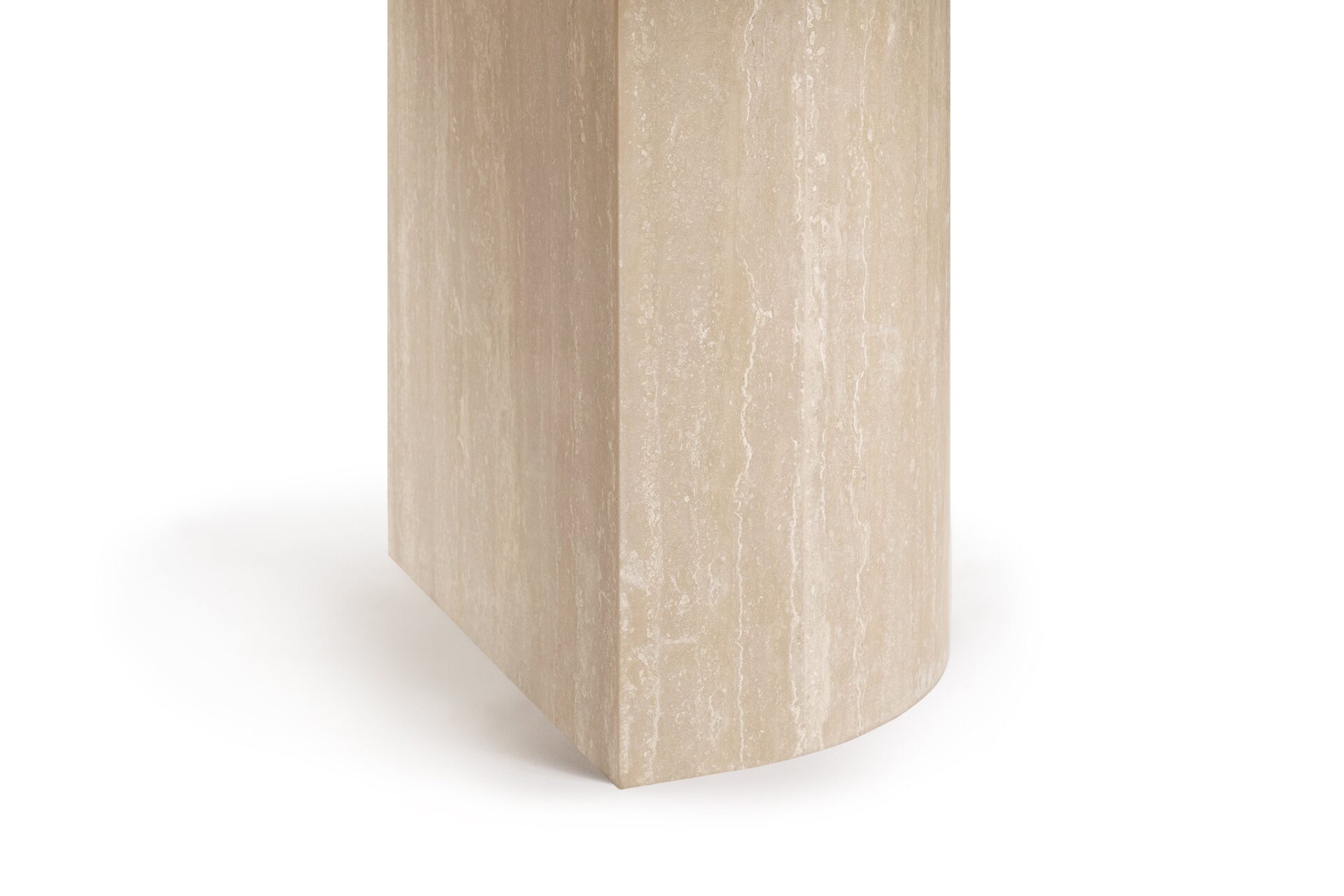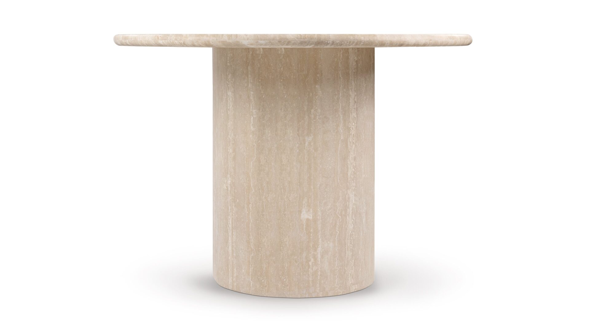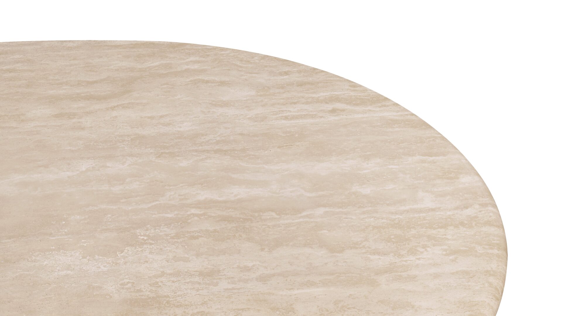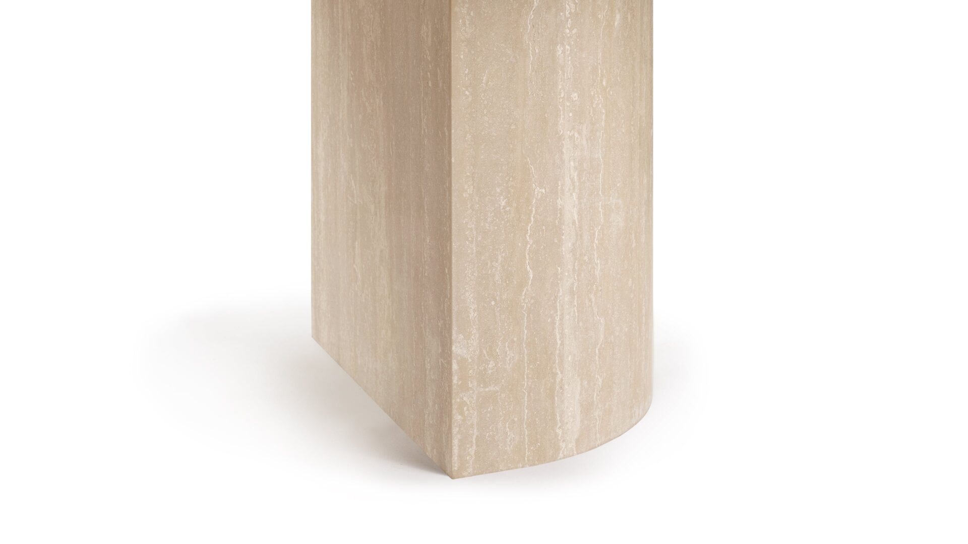 Please note that due to the natural travertine material, each Dante table will have unique variations in appearance, showcasing the stone's natural characteristics including color variants, veining, and pores.