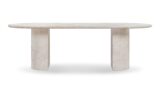 Discover a contemporary update to the pedestal base table with the Dante dining table. Boasting two demi-lune pillar legs and a spacious 77” oval table top, this table effortlessly accommodates extra place settings, making it an ideal choice for avid hosts.