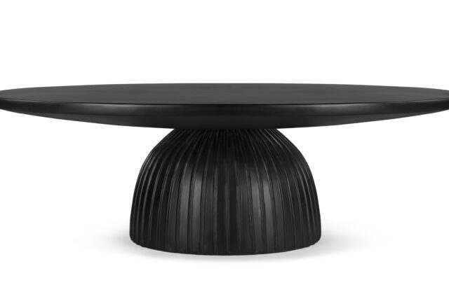 Elevate your space with the striking sophistication of the Orion Coffee Table in black. Its sturdy weighted base ensures durability for indoor or outdoor use, while the fluted design and slim neck create a sleek, modern look. Perfect for contemporary interiors, this table seamlessly combines style and functionality, offering a timeless piece to elevate any setting.