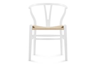 Introducing the Wish Chair - an iconic piece with a Danish mid-century design featuring unique backrest support. Its elegant simplicity is accentuated by curved back legs tapering to a stylish back rail. This minimalist dream in White combines a lightweight yet sturdy frame with a comfy paper-cord seat. Experience its timeless appeal in residential or commercial spaces, as it effortlessly adds charm and sophistication to any setting.