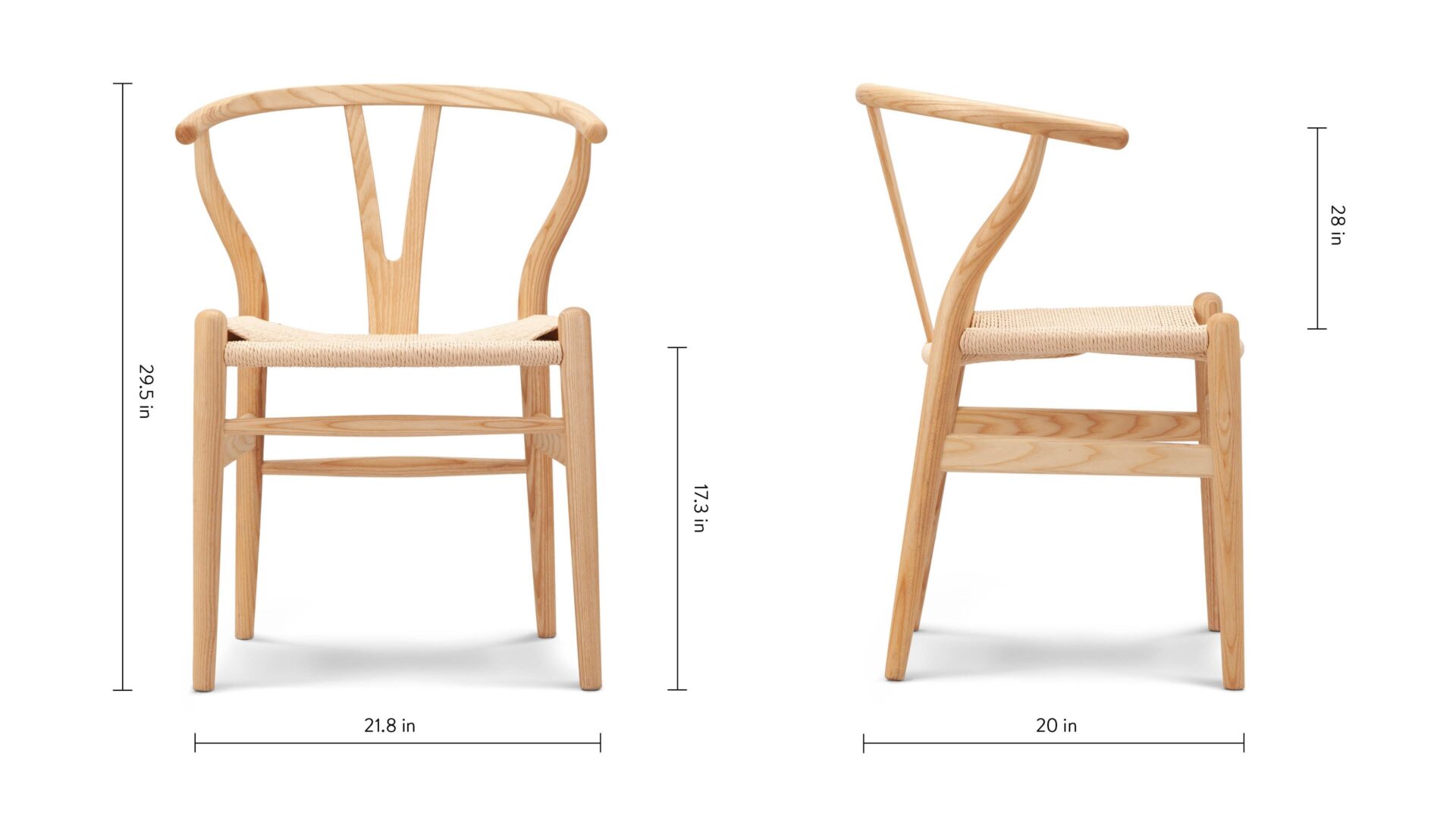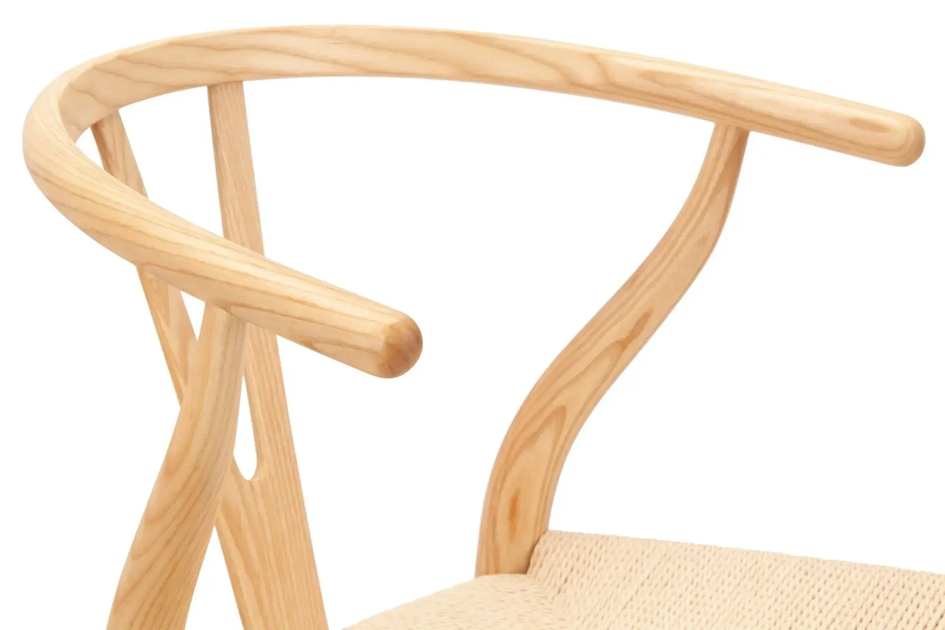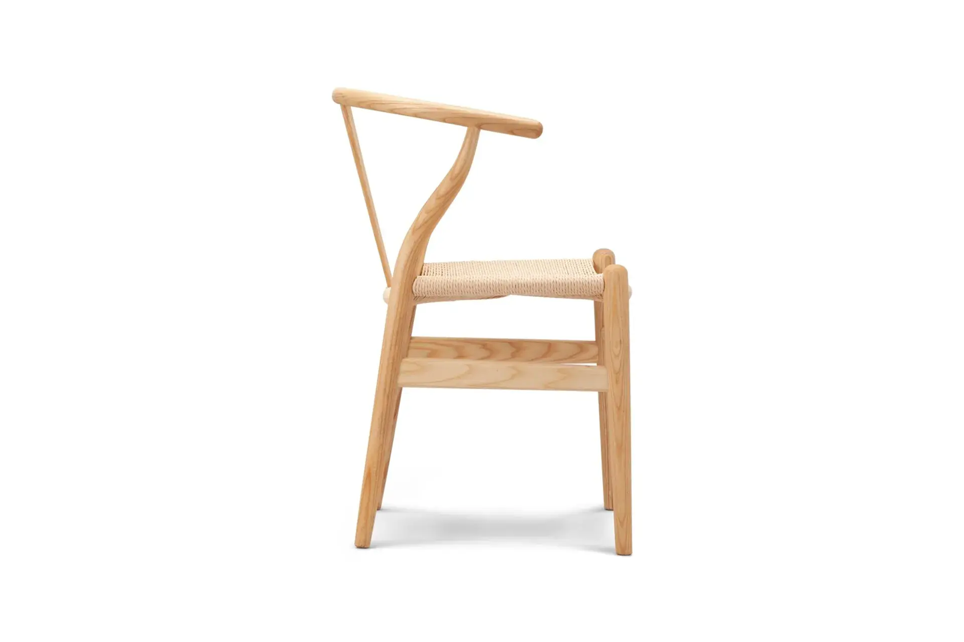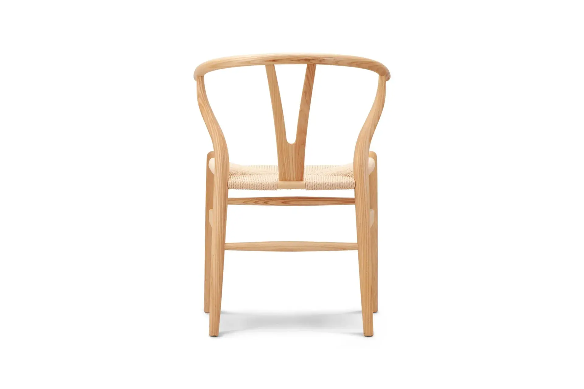 The Wish Chair, inspired by world-renowned Wishbone chair, exemplifies the iconic mid-century Danish design known for its unique back-rest support shape. This chair's design represents a superb example of elegant simplicity. Featuring curved back legs that gradually taper to connect with the back rail, its silhouette continues to captivate enthusiasts of the design. The Wish Chair is a minimalist's dream, boasting a lightweight yet sturdy and sophisticated frame paired with a comfortable paper-cord seat.