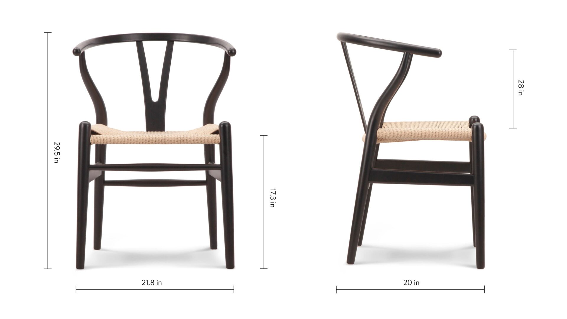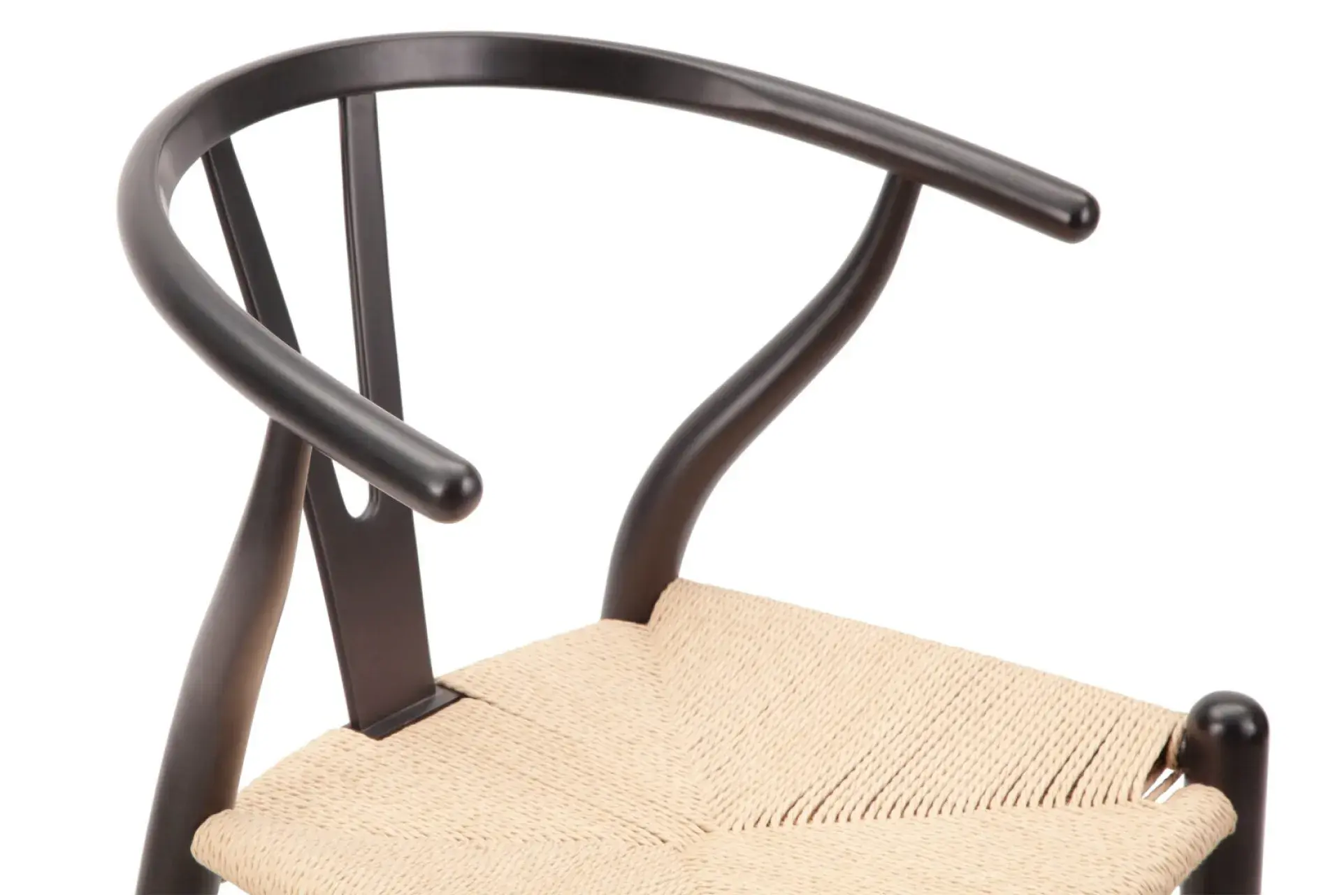 The Wish Chair, inspired by world-renowned Wishbone chair, exemplifies the iconic mid-century Danish design known for its unique back-rest support shape. This chair's design represents a superb example of elegant simplicity. Featuring curved back legs that gradually taper to connect with the back rail, its silhouette continues to captivate enthusiasts of the design. The Wish Chair is a minimalist's dream, boasting a lightweight yet sturdy and sophisticated frame paired with a comfortable paper-cord seat.