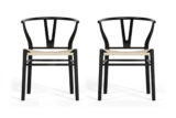 Experience the timeless sophistication of the Wish Chair, an iconic mid-century Danish design featuring a unique back-rest support shape. This minimalistic chair boasts a lightweight yet sturdy frame with elegant curved back legs and a comfortable paper-cord seat, perfect for residential and commercial settings. The black frame paired with a natural handwoven seat adds a touch of charm and flexibility to any space, making it a versatile and exquisitely crafted seating option that embodies true craftsmanship.
