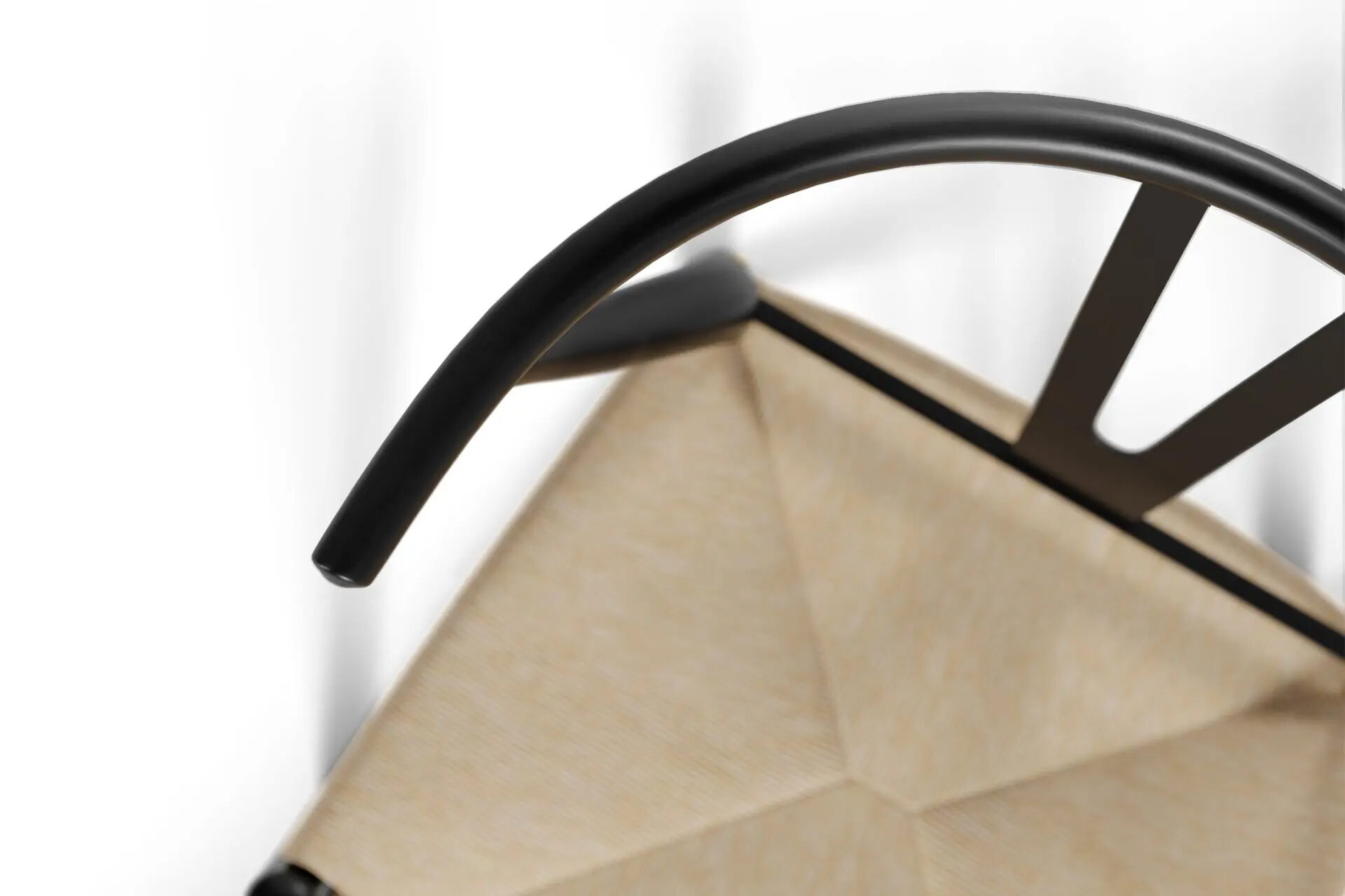 Inspired by Hans Wegner’s iconic Wishbone design, the Danish Dining Chair in Metal with Black Frame and Natural Woven Paper Cord unites timeless style with eco-conscious durability. Its handwoven cord seat adds warmth, while the sturdy metal frame ensures long-lasting strength—making it a versatile choice for homes or restaurants.