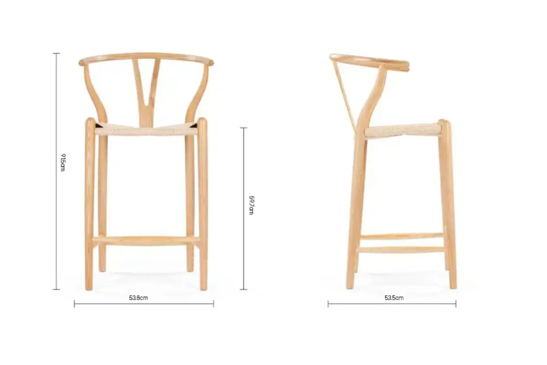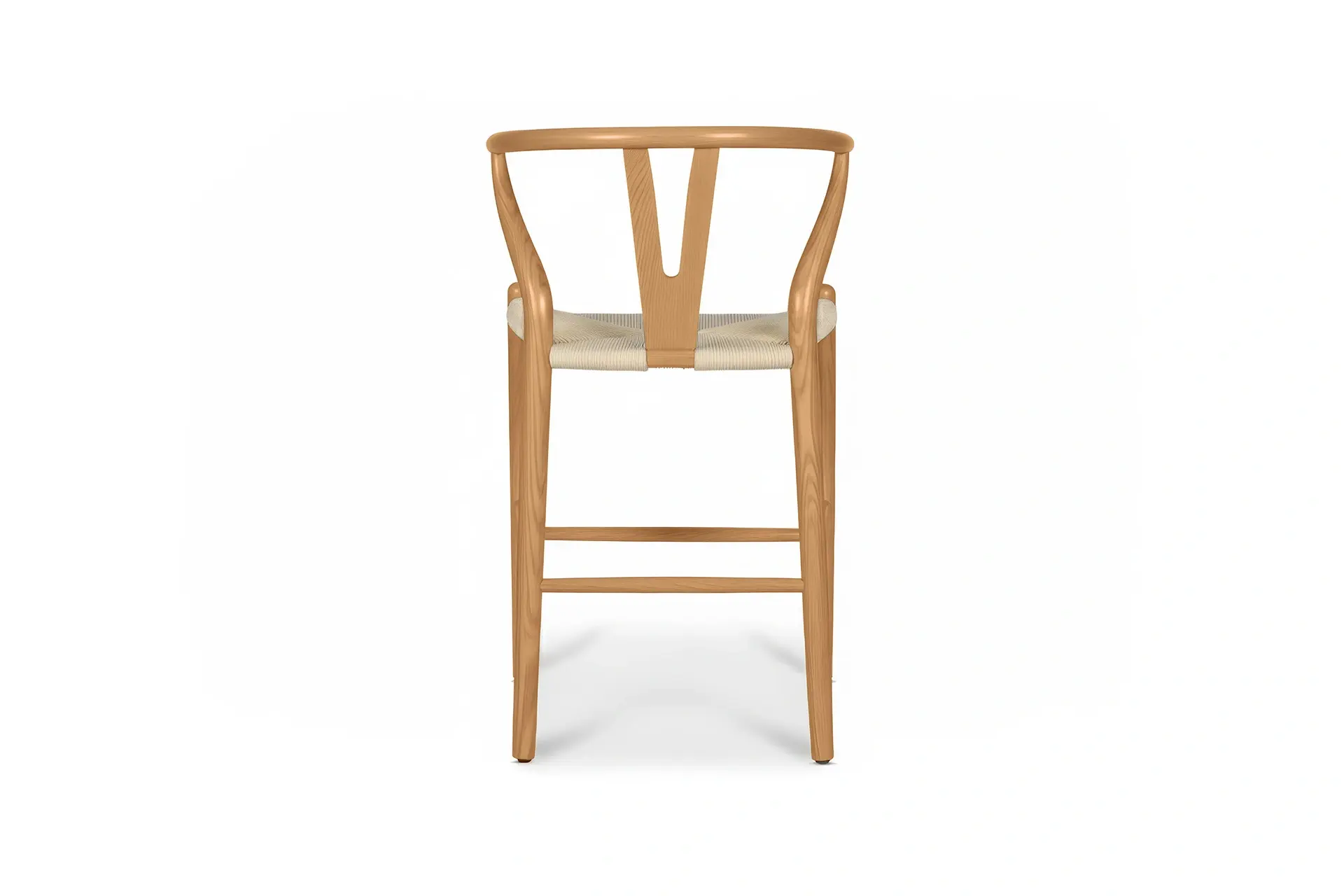 Indulge in the timeless charm of the Wish Counter Stool, a tribute to mid-century Danish design. Featuring a distinctive two-prong backrest and handwoven paper-cord seat, this stool resonates elegance and functionality. Crafted with a sturdy yet lightweight oak frame, it effortlessly blends minimalist aesthetics with Danish flair, offering a stylish and versatile addition to any space.