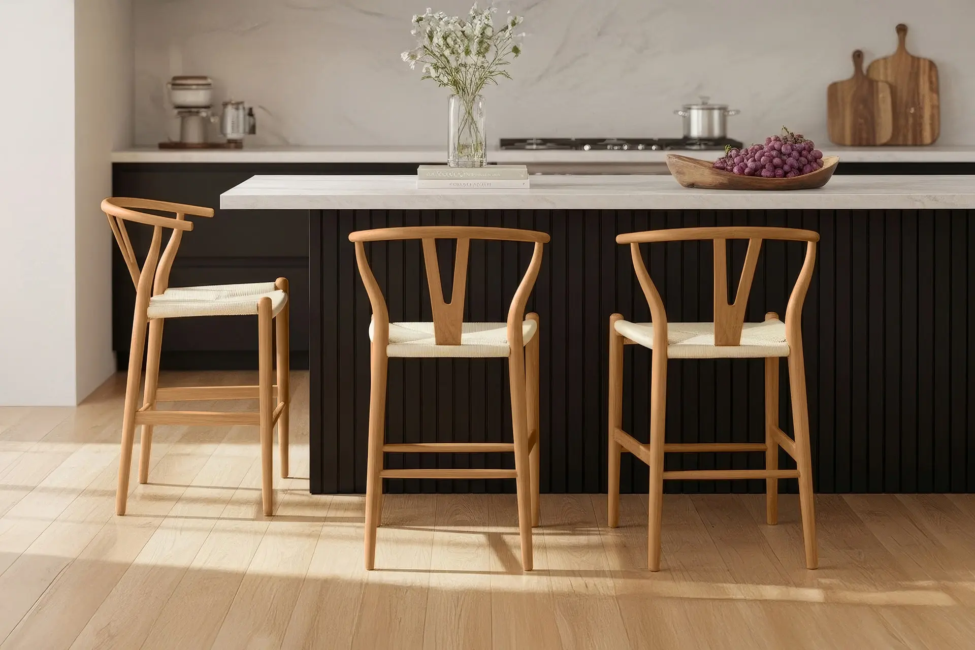 Enhance your bar area or patio with the ideal companion to the popular Wish Chair - the Wish Counter Stool. This iconic Scandinavian design features a handwoven seat and distinctive two-prong backrest, adding a touch of Danish flair to your space. A modern classic that perfectly complements your decor.