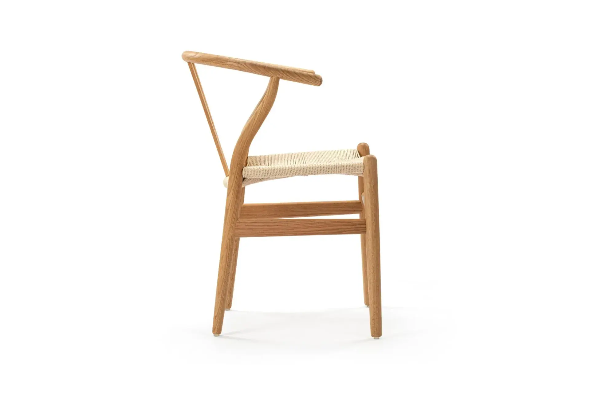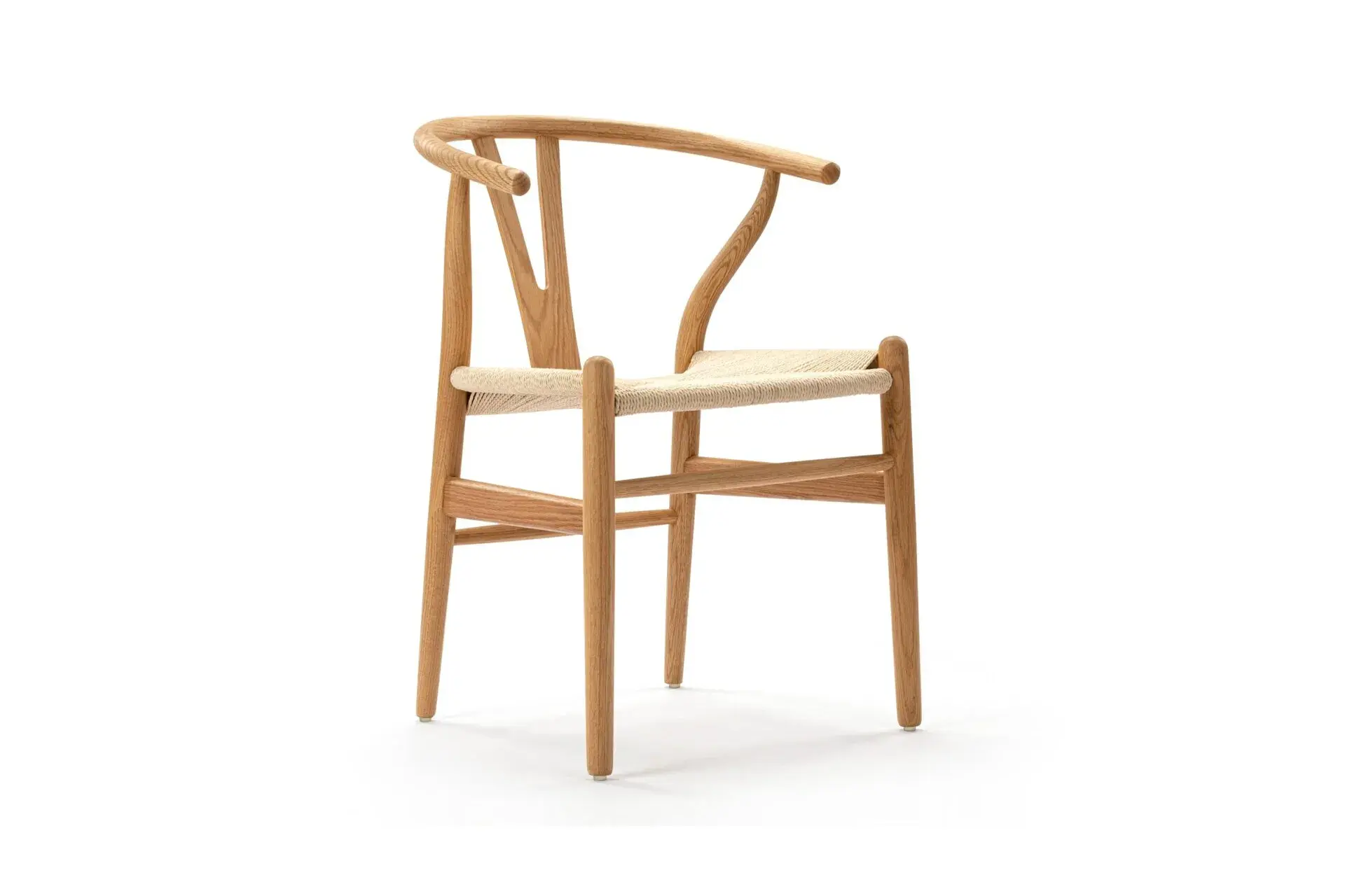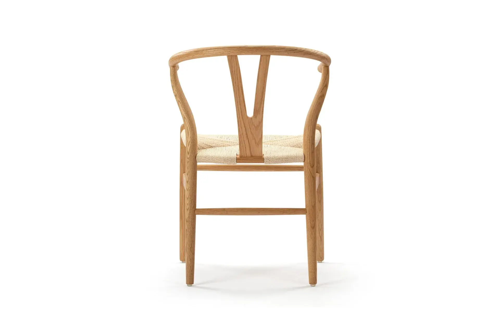 The Wish Chair, inspired by world-renowned Wishbone chair, exemplifies the iconic mid-century Danish design known for its unique back-rest support shape. This chair's design represents a superb example of elegant simplicity. Featuring curved back legs that gradually taper to connect with the back rail, its silhouette continues to captivate enthusiasts of the design. The Wish Chair is a minimalist's dream, boasting a lightweight yet sturdy and sophisticated frame paired with a comfortable paper-cord seat.