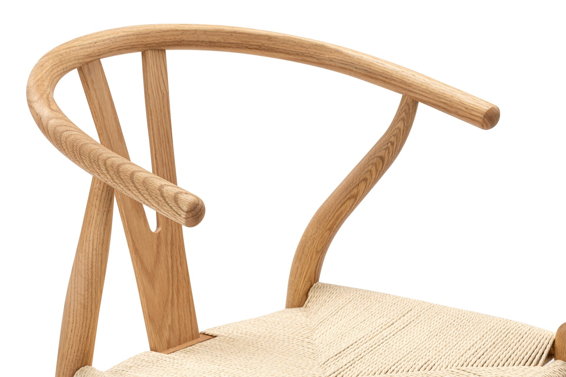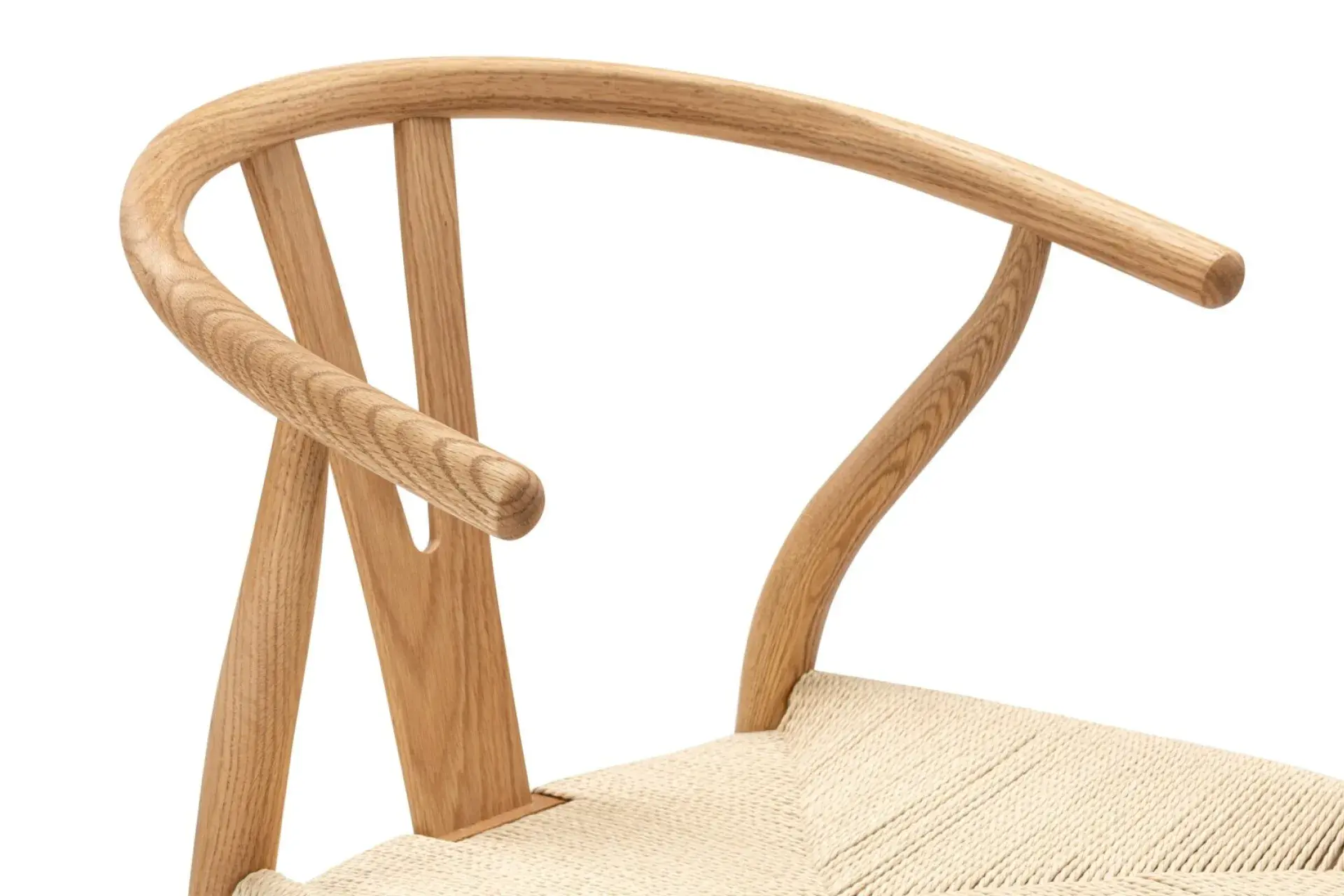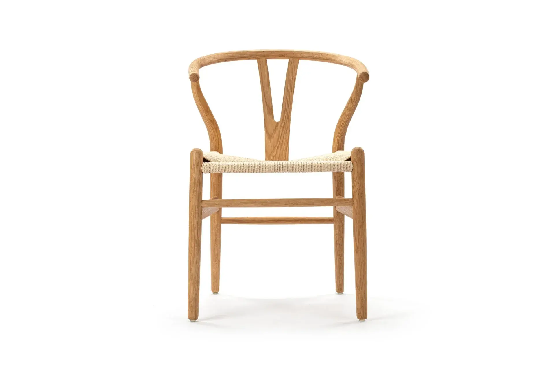 The Wish Chair, inspired by world-renowned Wishbone chair, exemplifies the iconic mid-century Danish design known for its unique back-rest support shape. This chair's design represents a superb example of elegant simplicity. Featuring curved back legs that gradually taper to connect with the back rail, its silhouette continues to captivate enthusiasts of the design. The Wish Chair is a minimalist's dream, boasting a lightweight yet sturdy and sophisticated frame paired with a comfortable paper-cord seat.