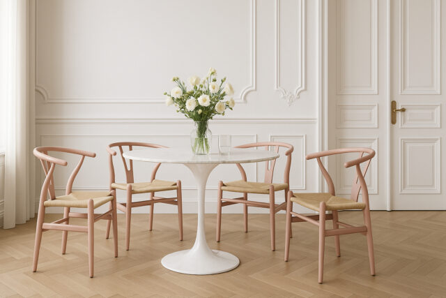Experience the iconic charm of the Wish Chair, also known as Danish Dining Chair, for yourself. With its pastel pink frame and graceful minimalist design, it becomes more than seating—it’s a delicate touch of beauty, perfect for a quiet corner that feels entirely your own.