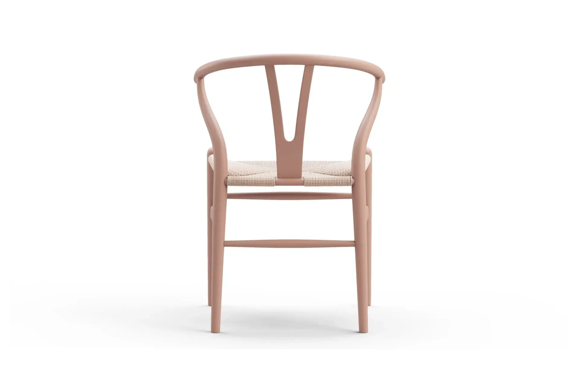 Discover the sleek and iconic Wish Chair, embodying the timeless mid-century Danish design with a unique back-rest shape. Effortlessly blending elegant simplicity with a sophisticated pink paper-cord seat, this minimalist dream chair boasts a lightweight yet sturdy frame. Elevate any space with this versatile and exquisitely crafted seating option, ideal for both residential and commercial settings.