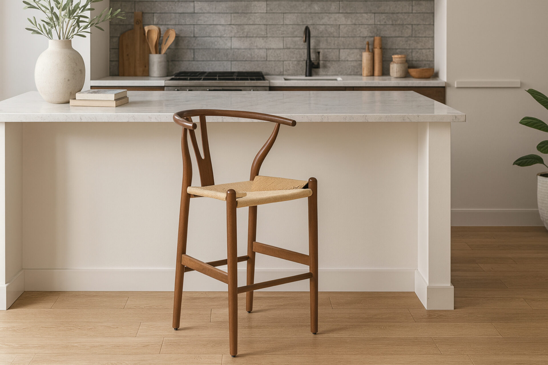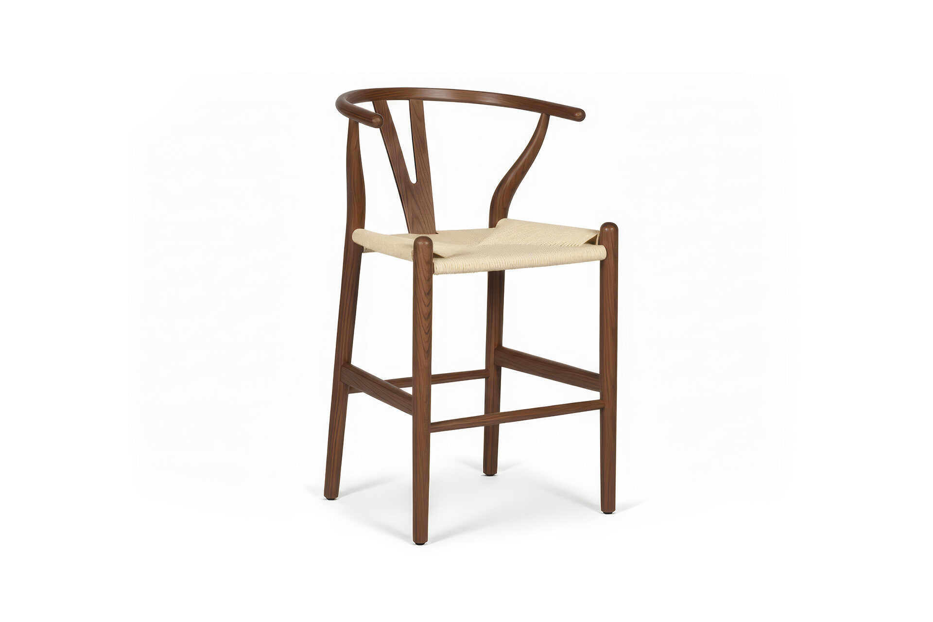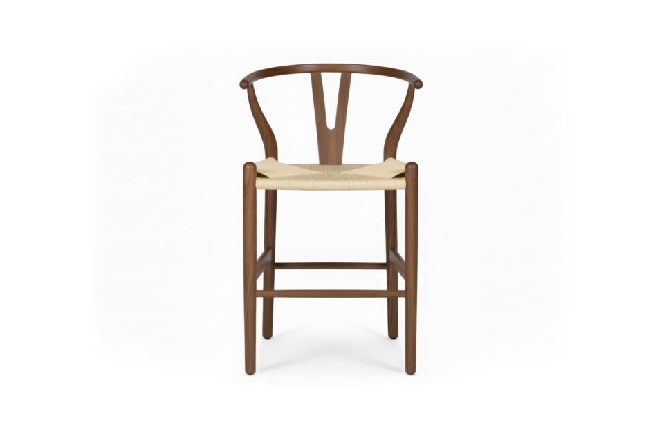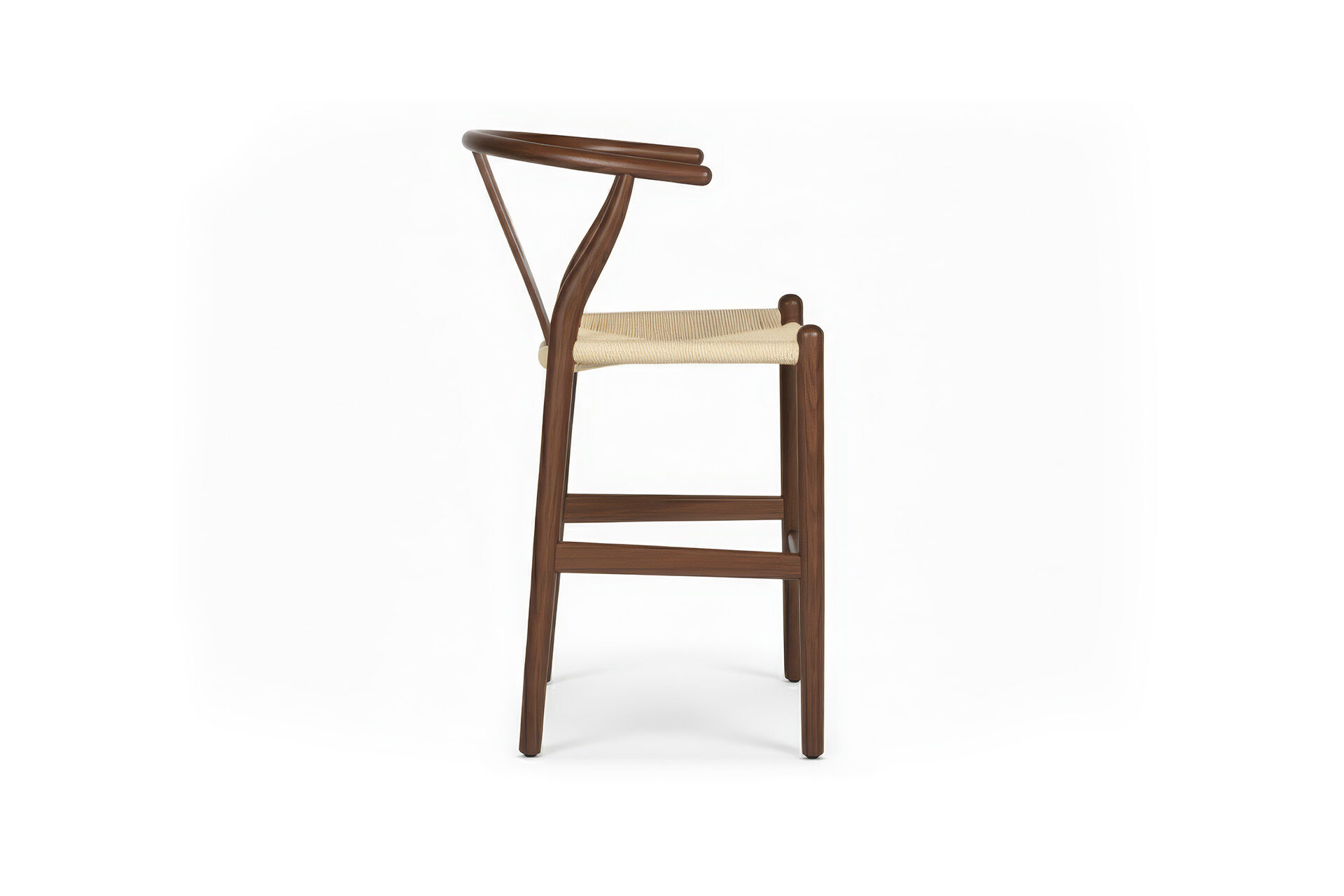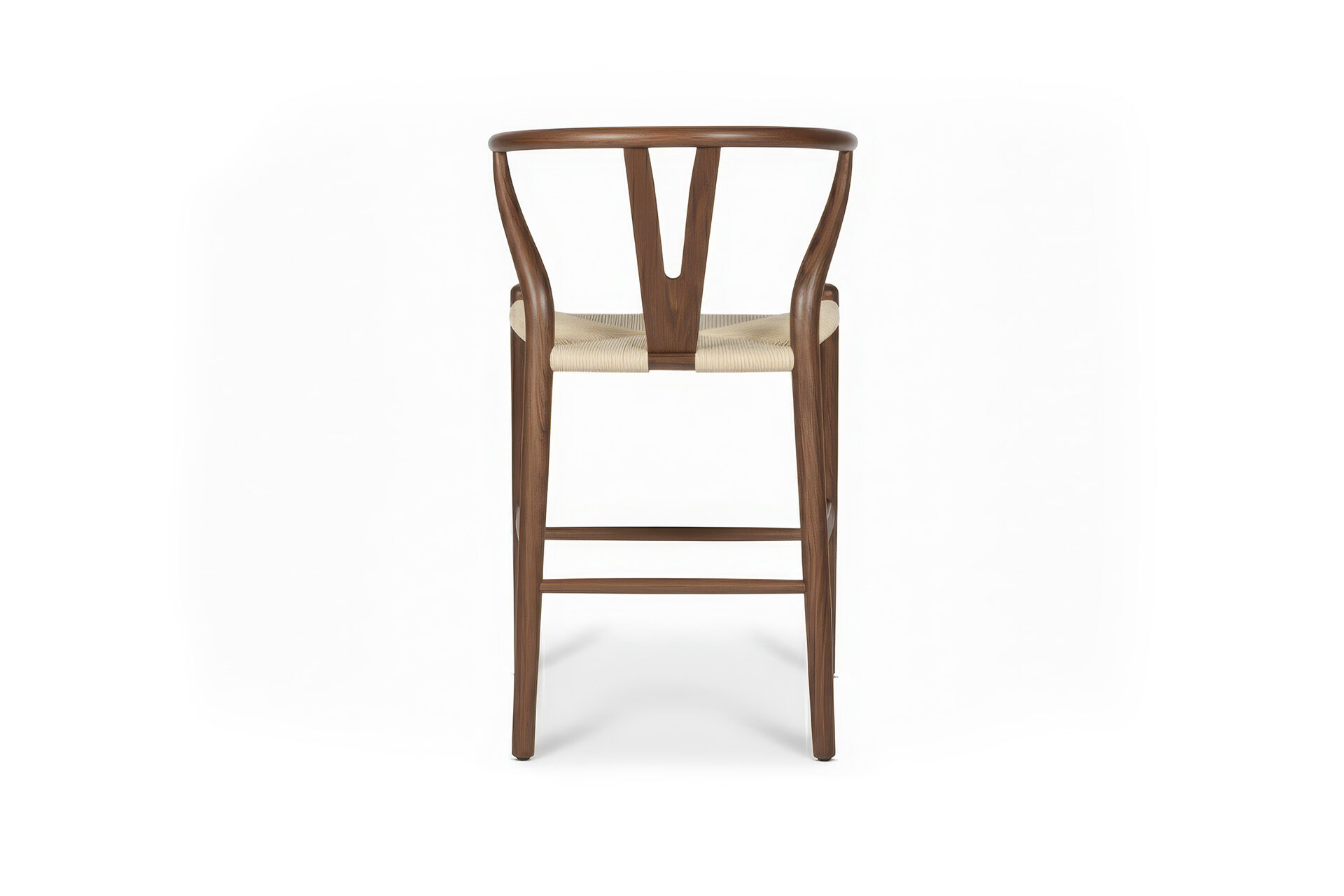 Enhance your kitchen or bar with the Walnut Counter Stool, a striking companion to the iconic Wish Chair. Its sculpted backrest, elegant walnut finish, and woven paper-cord seat showcase authentic Danish design—bringing warmth, craftsmanship, and mid-century sophistication to your space.
