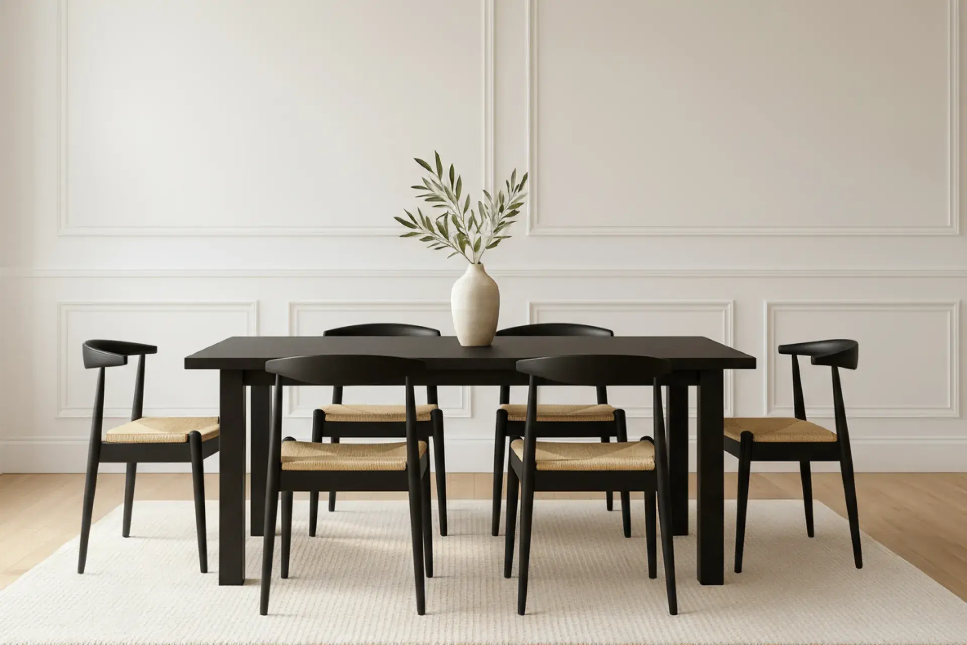 The Torsten Dining Chair blends sturdy black wood with the gentle texture of a natural handwoven seat and backrest. This striking contrast delivers both visual character and everyday comfort, giving you a chair that feels as supportive as it looks timeless.