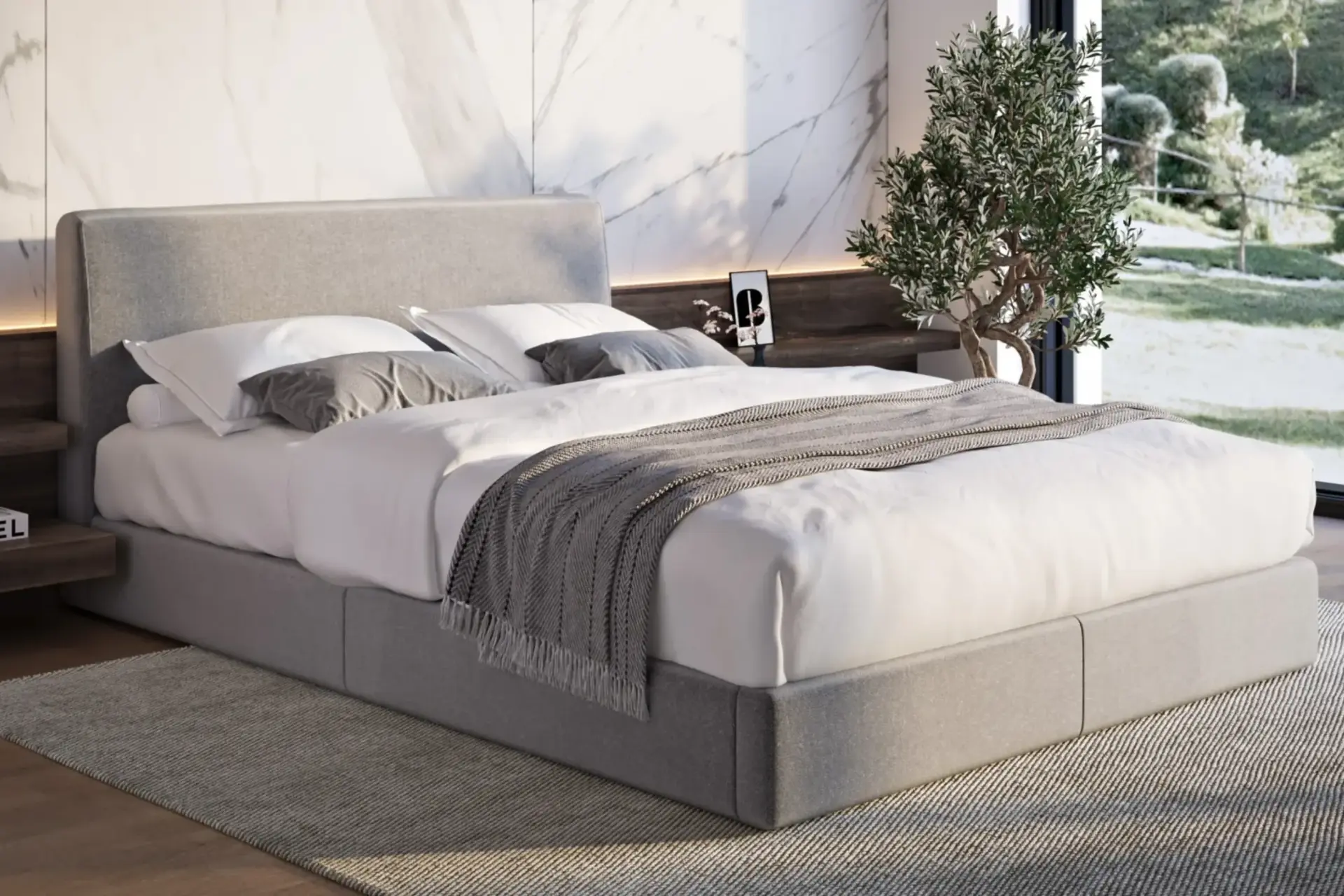 Defined by balance and elegance, this king-size piece introduces refined calm to the bedroom. Its soft grey tones and seamless form evoke modern sophistication, while every element is crafted to inspire comfort and quiet beauty, turning rest into a truly elevated experience.