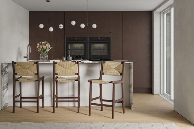 Rich and refined, the Winona Bar Chair in walnut wood offers a deeper, cozier presence. Its smooth curves and organic materials provide natural comfort, adding understated elegance to kitchens or bars while keeping every moment grounded in warmth and ease.