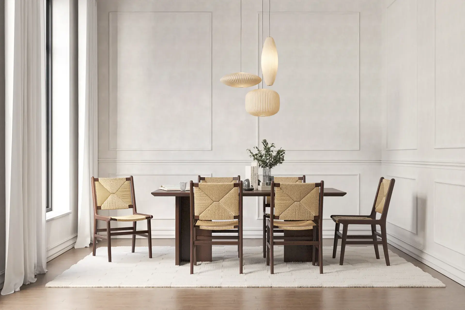 With a deep walnut frame and handwoven papercord seat, the Winona Dining Chair blends natural sophistication with lasting comfort. Its graceful form and tactile textures create an inviting atmosphere—perfect for modern homes that value quiet beauty and enduring craftsmanship.