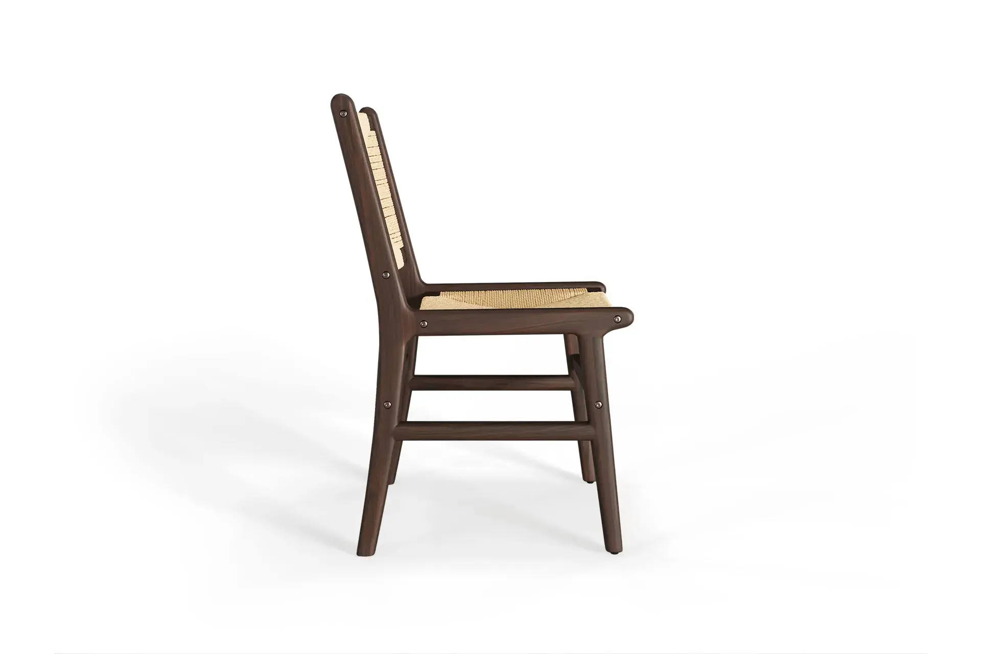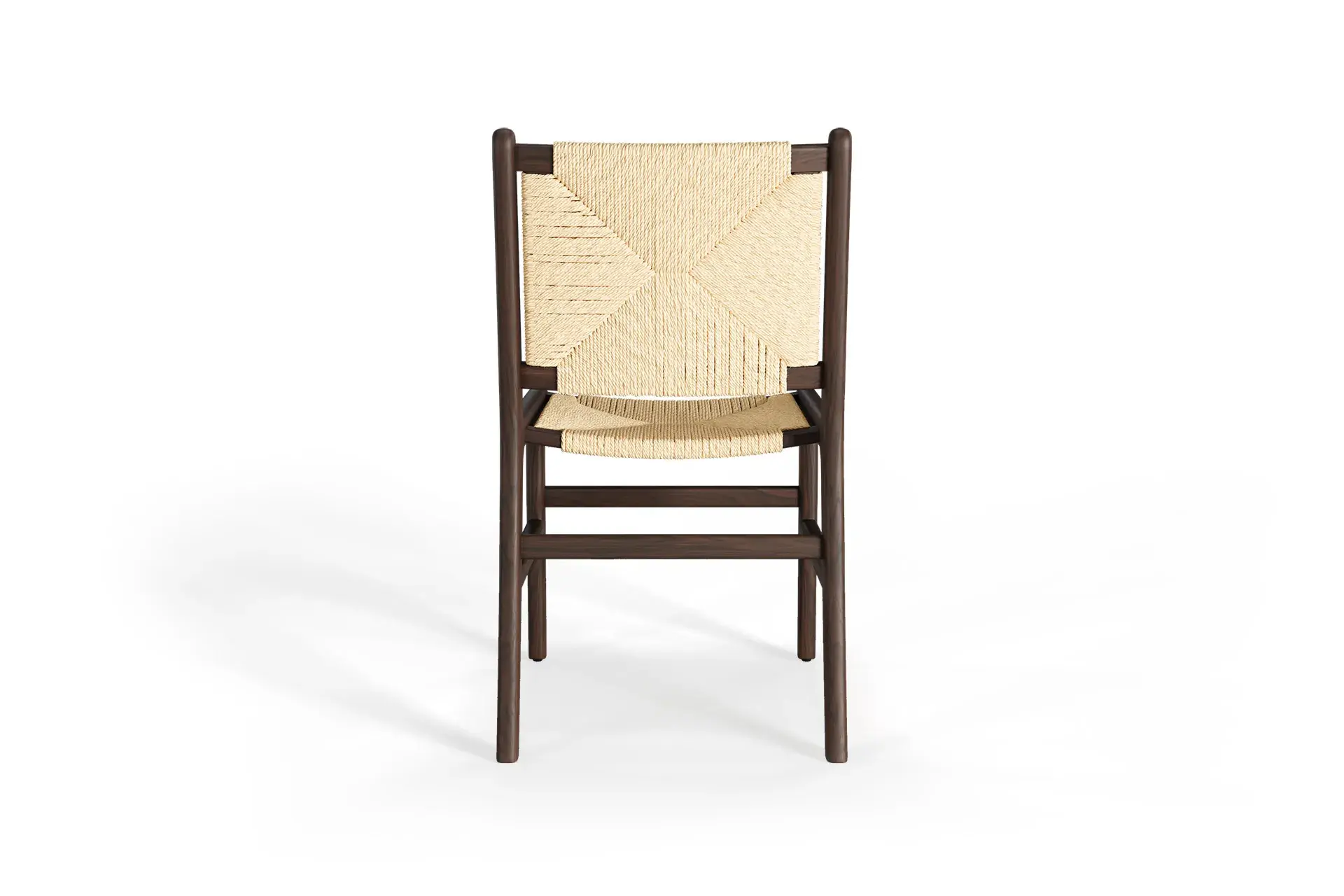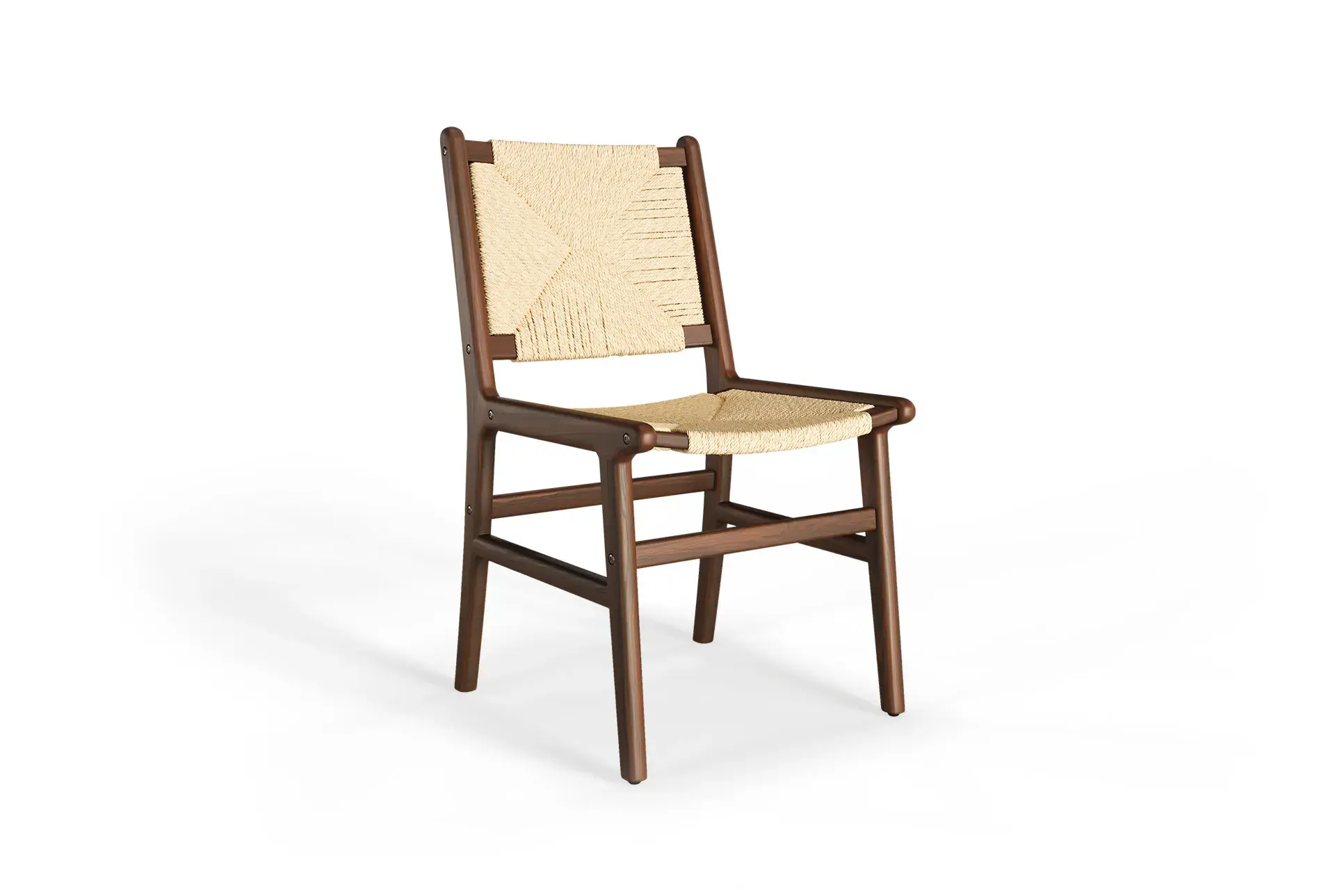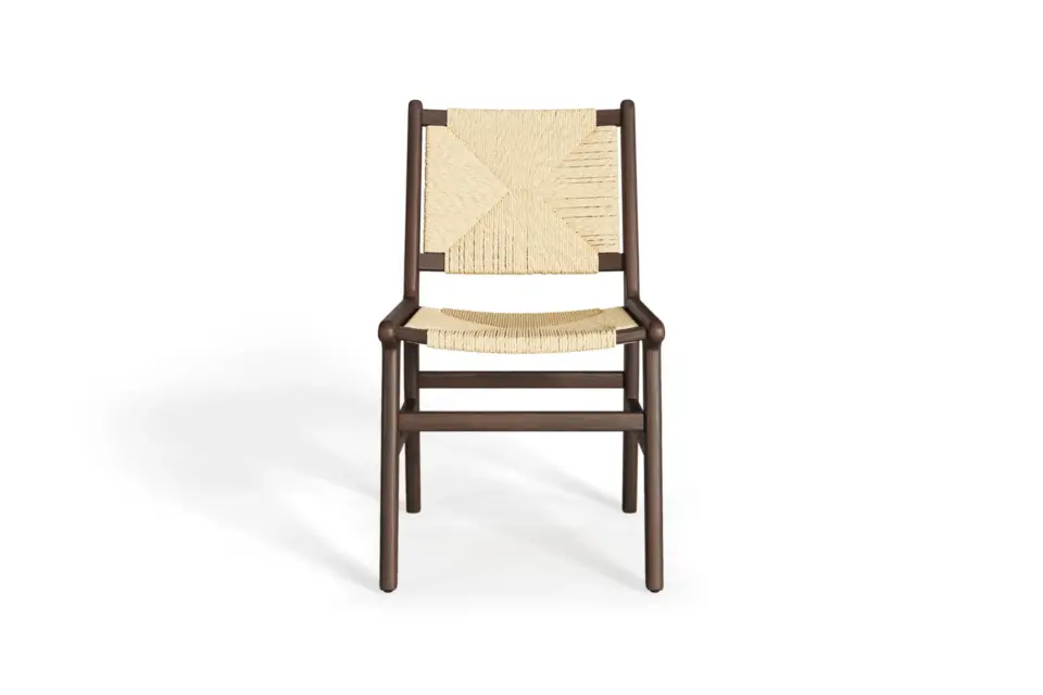 The Winona Dining Chair in walnut wood brings warmth and natural elegance to any dining space. Its smooth lines and woven papercord textures blend beautifully with both rustic and modern interiors, offering lasting comfort and a refined sense of balance at every gathering.