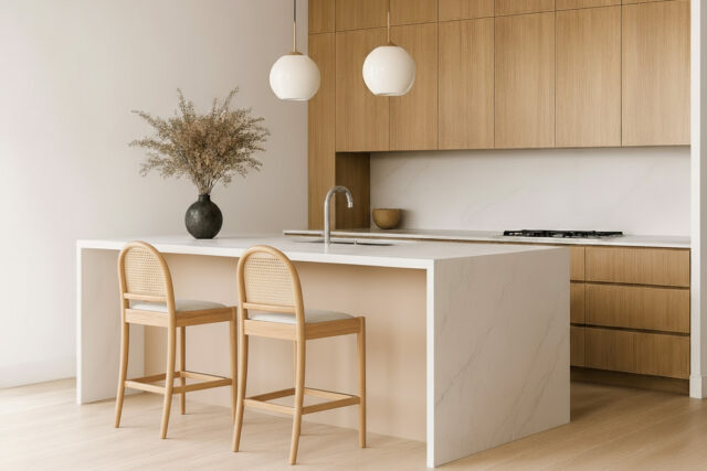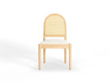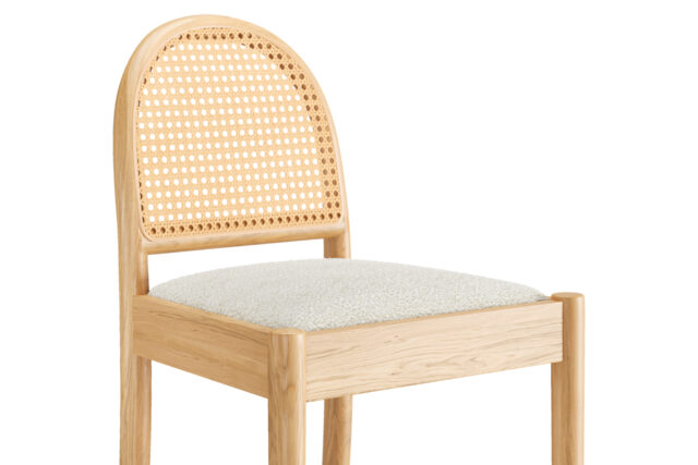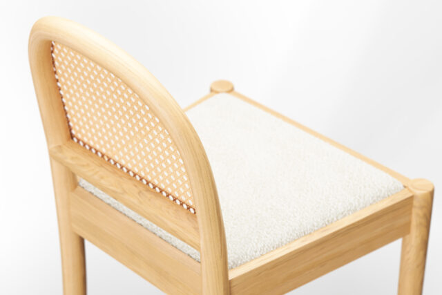 Light-toned wood brings brightness and a sense of openness, celebrating the natural grain’s calm beauty. White bouclé enhances the experience with cozy texture and lasting resilience, while woven rattan adds gentle ventilation and artisanal character — a blend that feels fresh, soothing, and enduring.